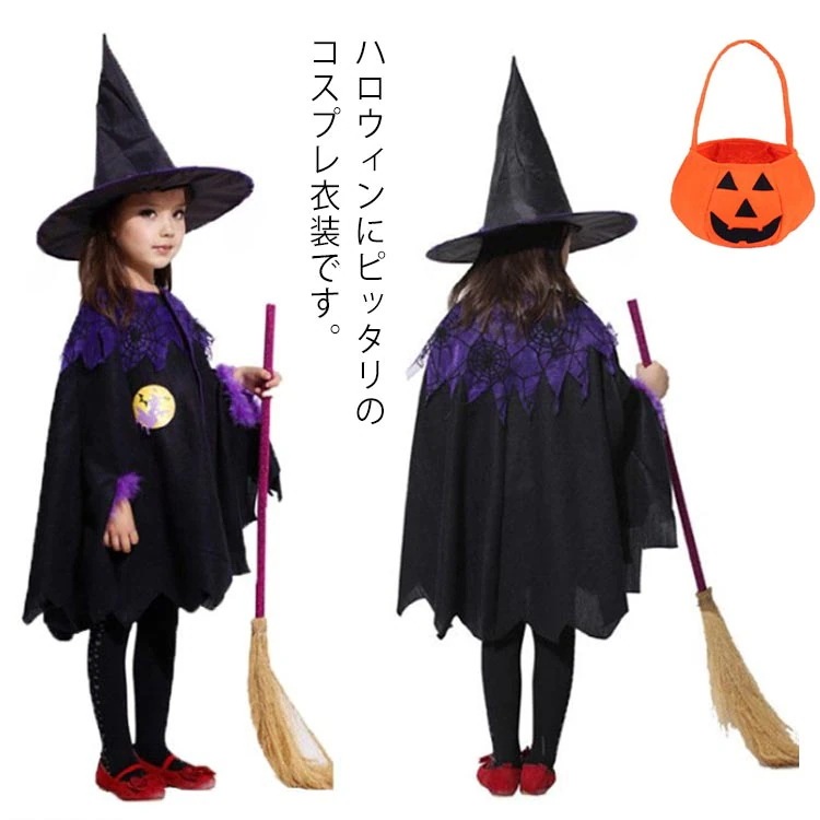 魔女 ハロウィーン コスプレ 4点セット 子供 こども キッズ 女の子 魔女 小悪魔 仮装 ワンピース ハロウィーン ダンス衣装