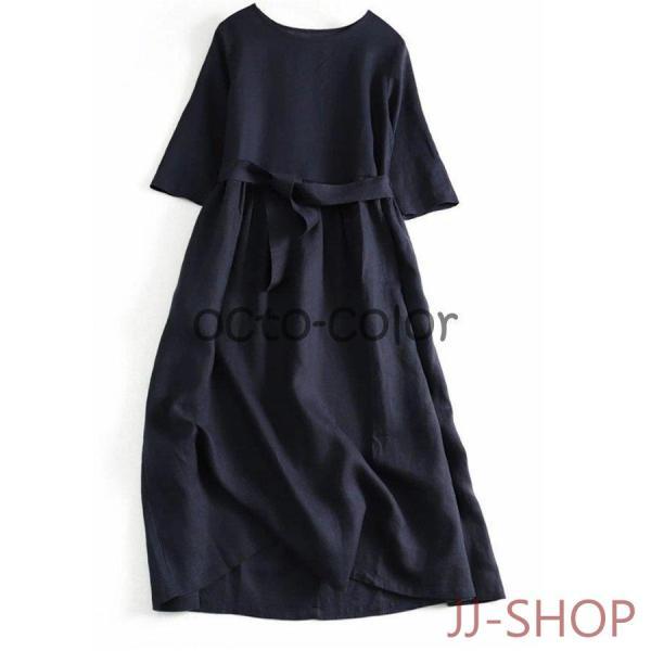 品質いいな新品 ワンピース リネンワンピース レディース ロングワンピース 綿麻 七分袖 シンプル 体型カバー ゆるシルエット 無地 きれいめ アウター 春夏