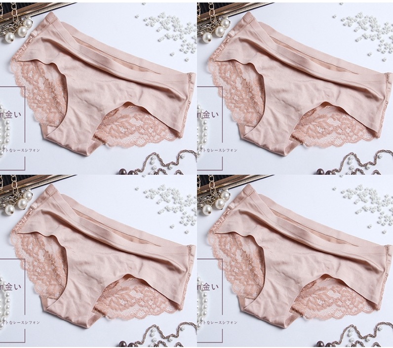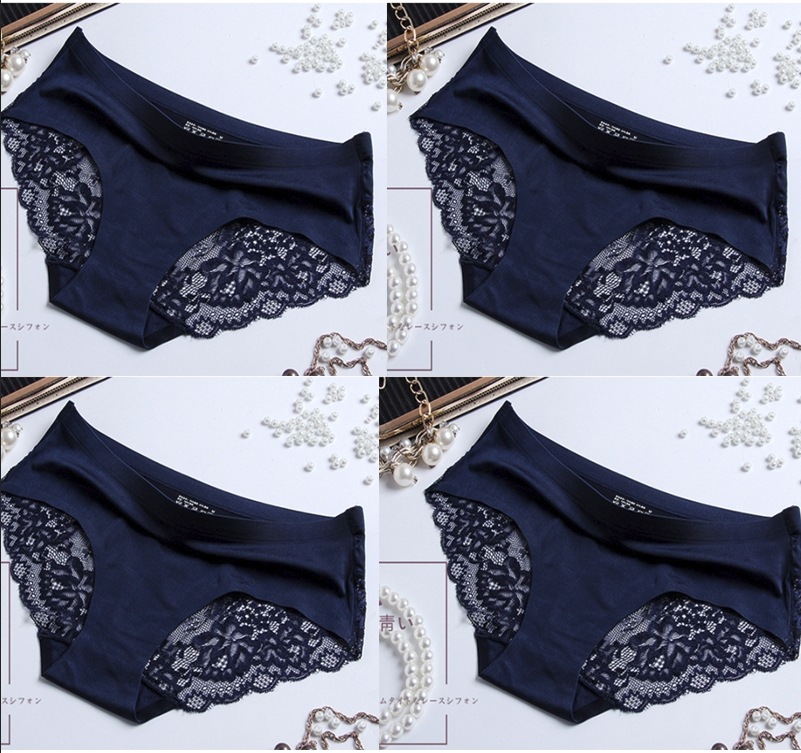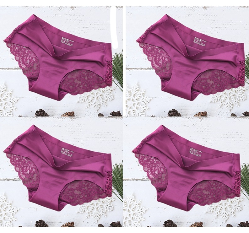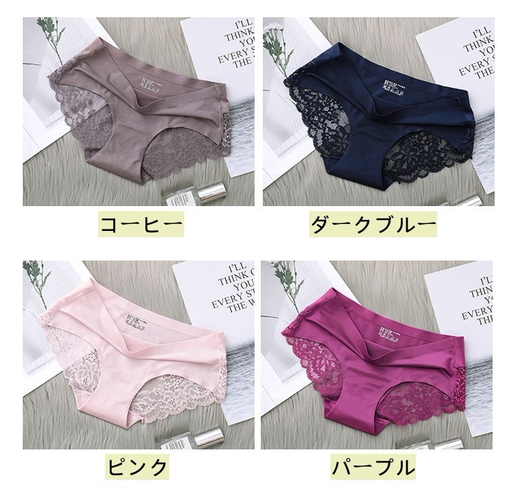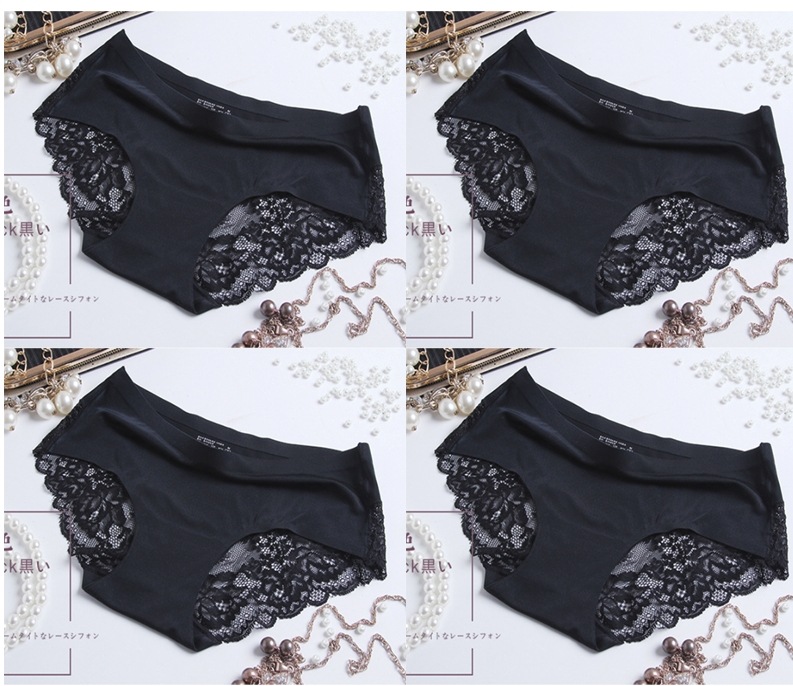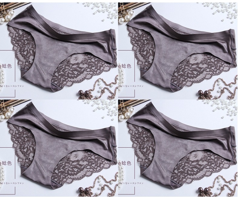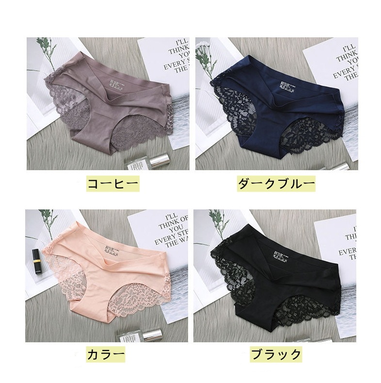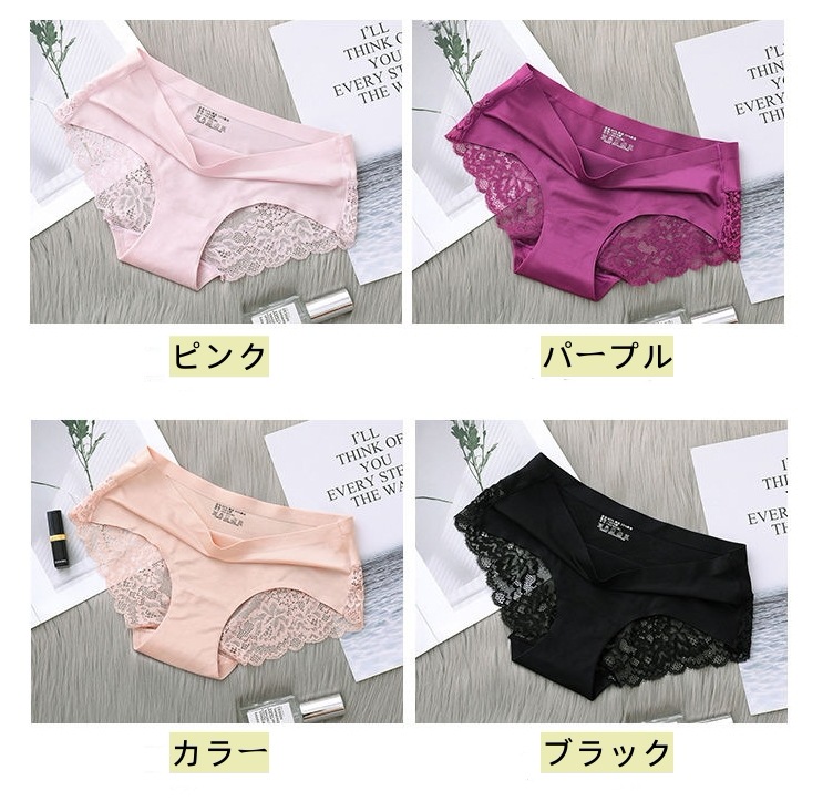 【今月限定】4枚アイスシルクパンティーシームレスレース純綿クロッチ肌に優しいセクシー通気性超薄型