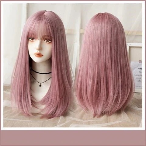 ピンクウィッグロング夏ロングストレートロリータアニメcosフェイクファーナチュラルオールインワンセット かつら cos ぜんちょうかつら
