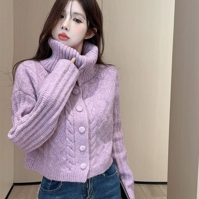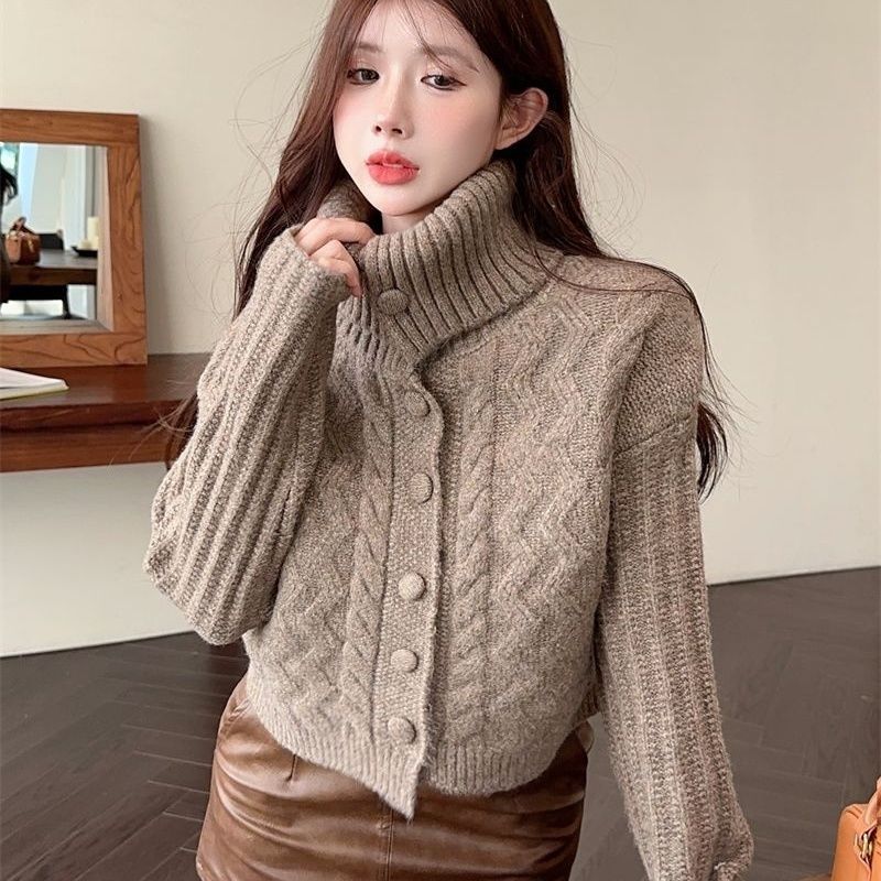 ニットカーディガンアウター人気なリブニット ニットセーター レディースベーシックニット ハイネック ニットトップス百掛け 韓国ファッションスウェットアウター クリスマス