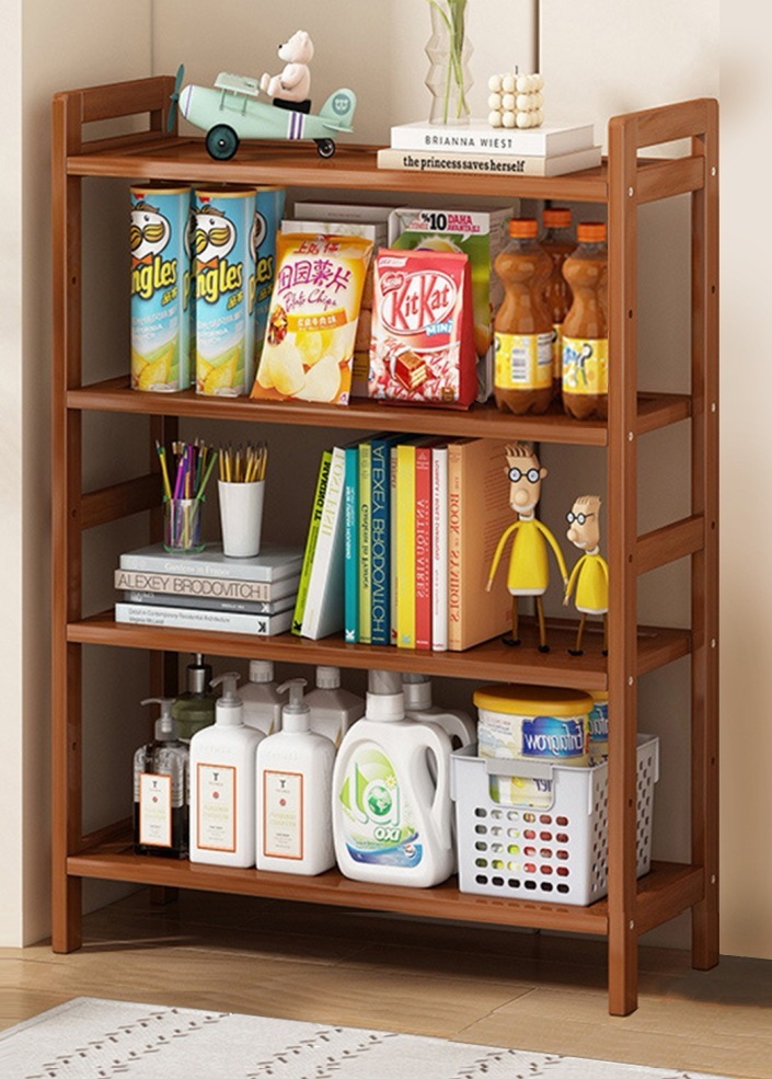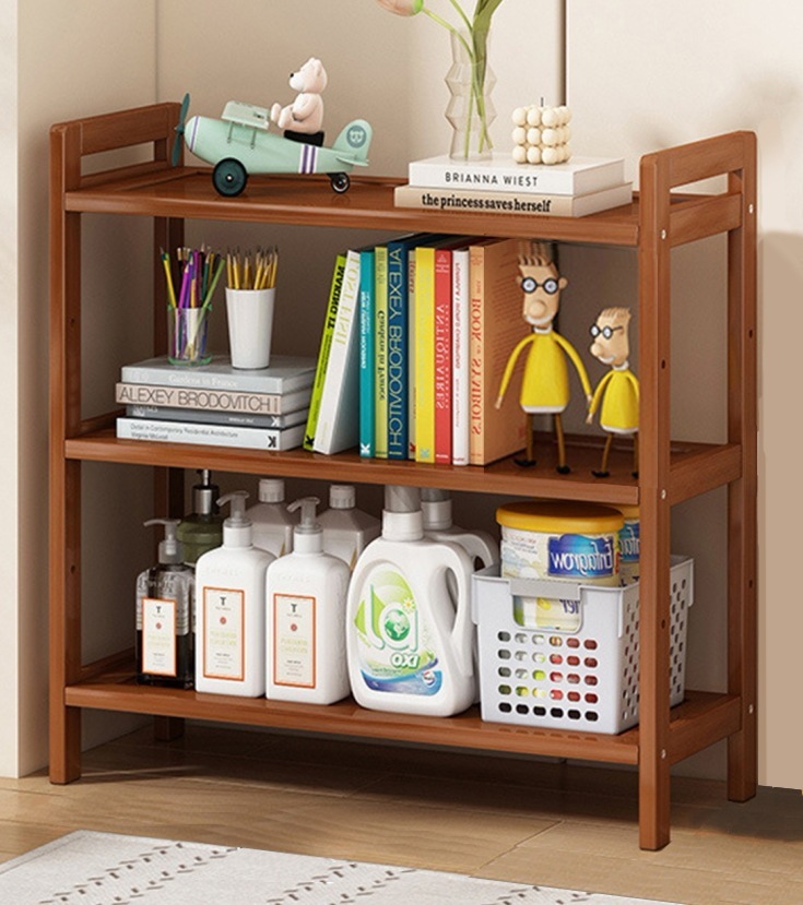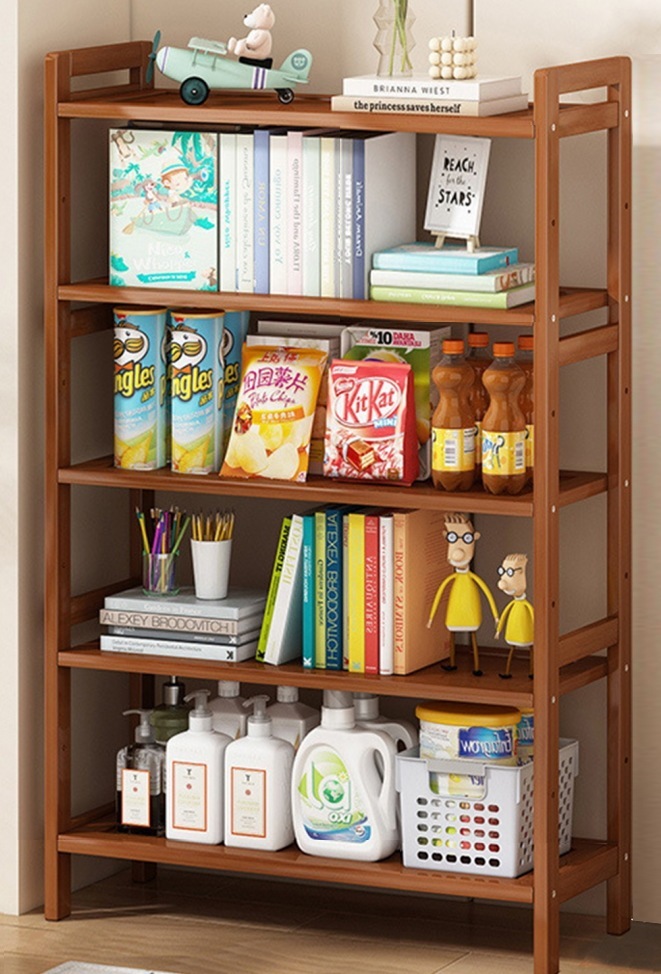 本棚 ラック スリム オープンシェルフ 各棚高さ調節可能 収納ラック 天然竹製 組立品 茶色
