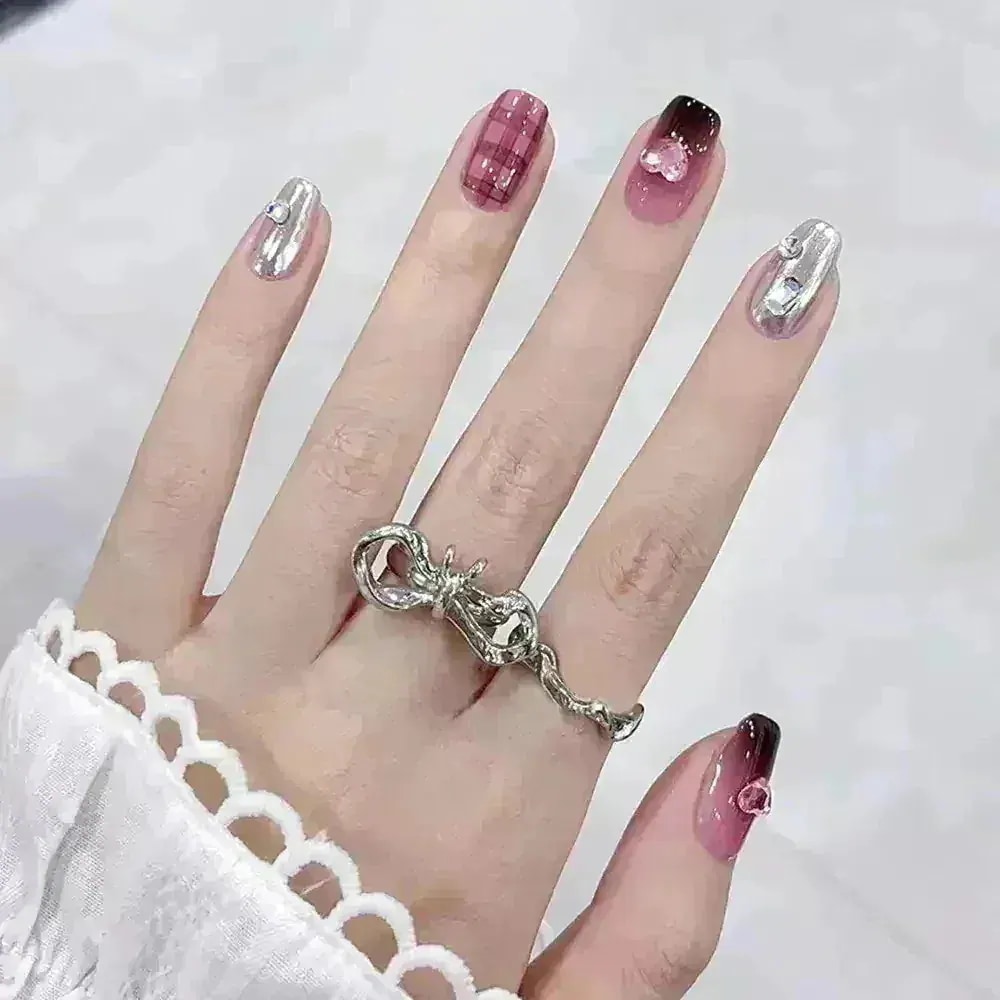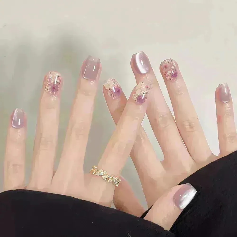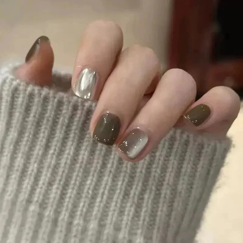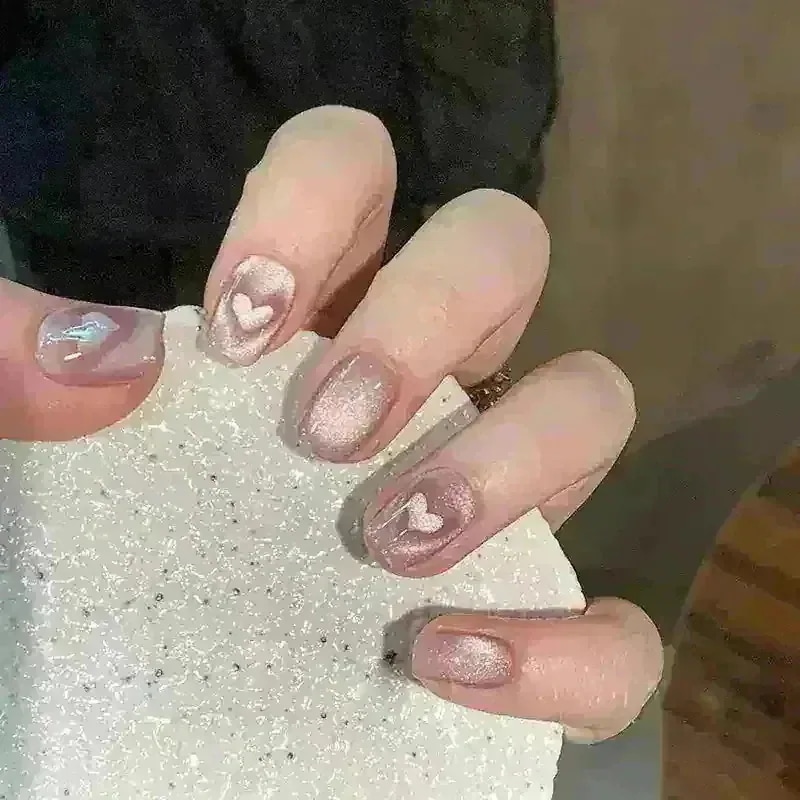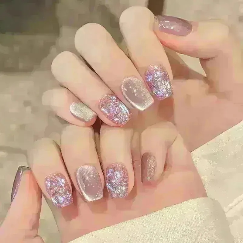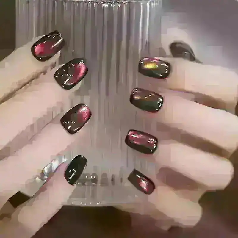 私が頼んだものは、画像ではピンクがメインでそこにシルバーのラメといった感じでしたが、実際はシルバーのマグネットネイルの中央にほのかにピンクがある感じで、どちらかというとシルバーメインのネイルでした。