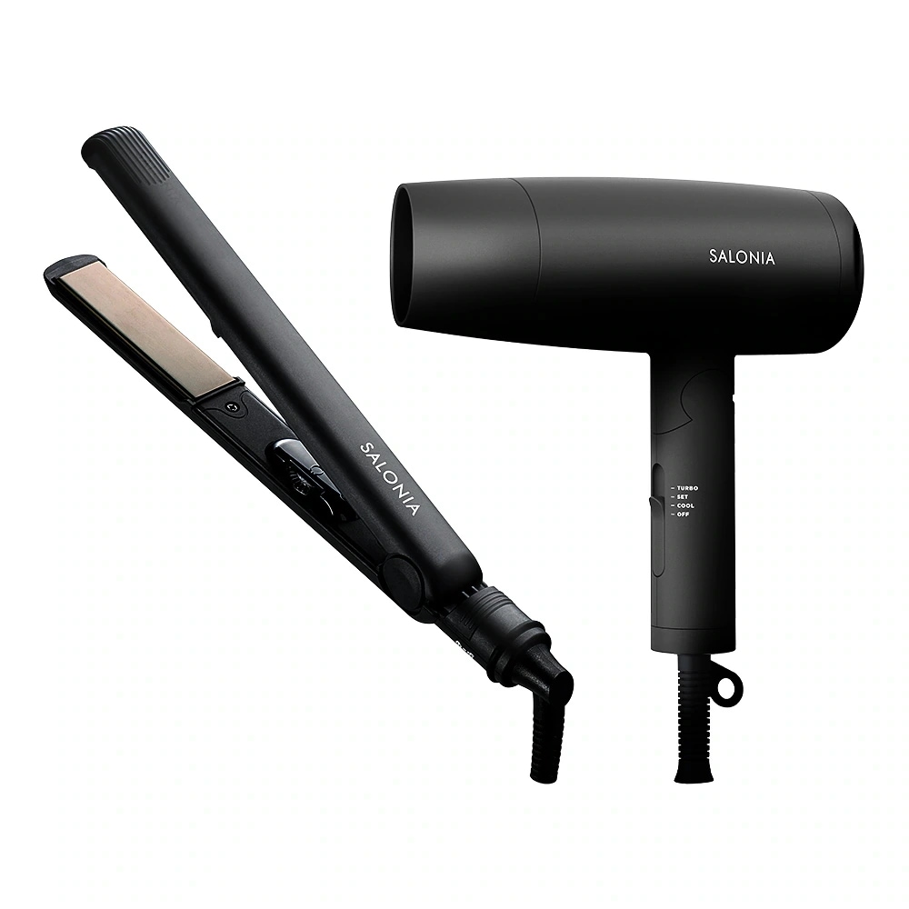 色的にはベージュが好みなのですが、(アイロンは)セラミックとチタニウムとでは、チタニウムの方が良いとネットで美容師さんが語っていて、サロニア買うなら、ブラック、グレー、ネイビーをお勧めしていたので、ネイビーにしました。ドライヤーもアイロンも軽いです。SHARPのプラズマクラスターのドライヤーが壊れてしまって、とりあえずで安いドライヤーを使っていたので、それに比べたら良いですが・・・絶賛できるものは無いかな。可もなく不可もなくですが、しばらくはこちらのセットを使います。