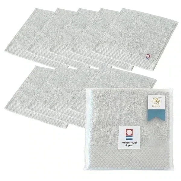 タオルショップブルーム(今治袋ラッピング) タオル プチギフト ハンカチ 10枚セット リボンシール付き シエル 今治タオル お配りギフト (宅配) 日本製 のし対応不可紙袋付属なし 個包装 まとめ買い 挨拶 お礼 退職