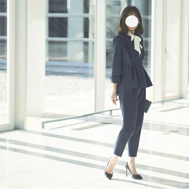 【定番アイテム】 ジャケット ボウタイブラウス テーパードパンツ 入学式 卒園式 ママスーツ セレモニースーツ 2点セット レディース