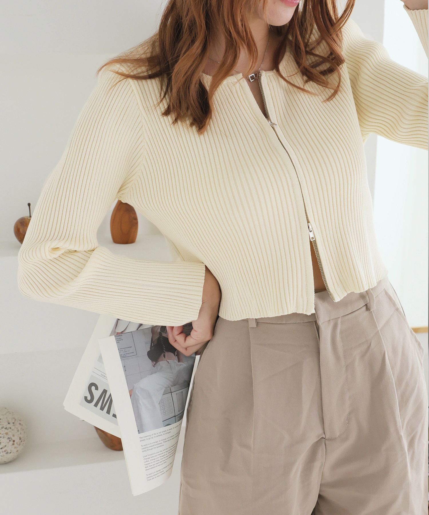 色はアイボリーが合わせやすくてダブルファスナーが着こなしやすい