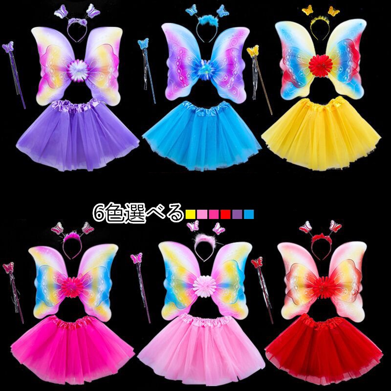 羽根 妖精 蝶 蝶々翼 蝶の翼 ハロウィン 4点セット ダンス衣装 キッズダンス 子供用  仮装 女の子 キッズ コスチューム 衣装 文化祭n5