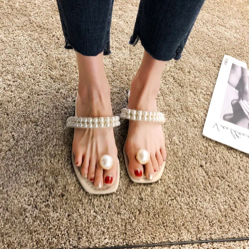 フラットサンダルレディースサンダルパールスリッパカジュアル快適性フラットシューズ