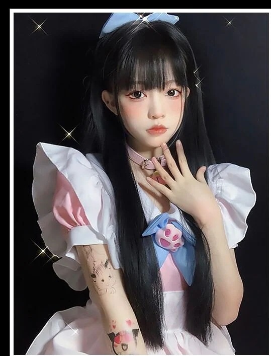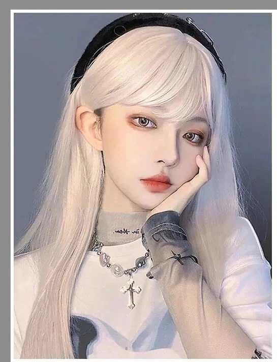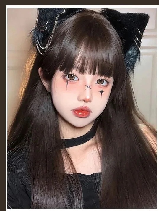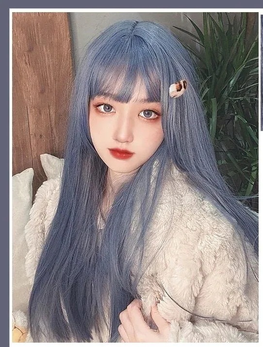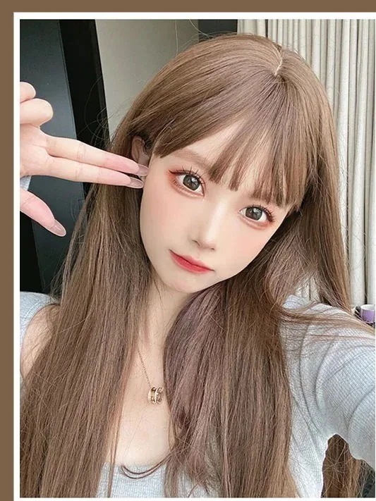 ウィッグカバー女性オールインCOSロングストレートlolitaエアリーバング減齢ナチュラルウィッグ女性オールイン かつら cos ぜんちょうかつら