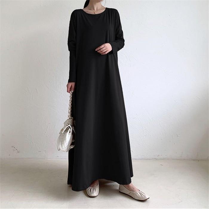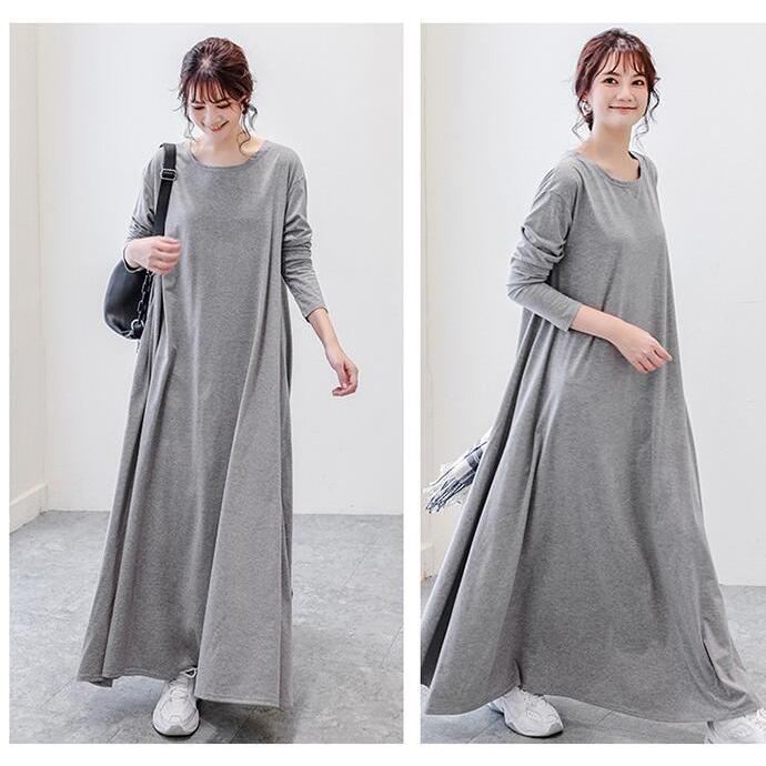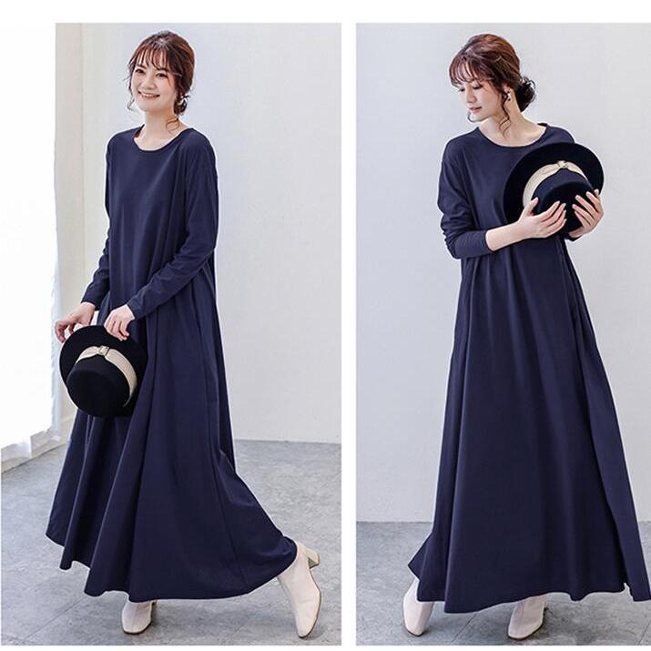 人気商品超目玉 ワンピース レディース 秋 長袖 マキシワンピース ロングワンピース フレア マキシ丈 丸首 長袖 綿 重ね着 体型カバー ゆったり シンプル 春 秋冬