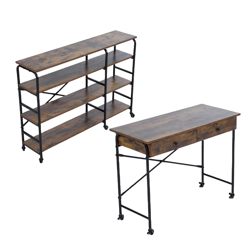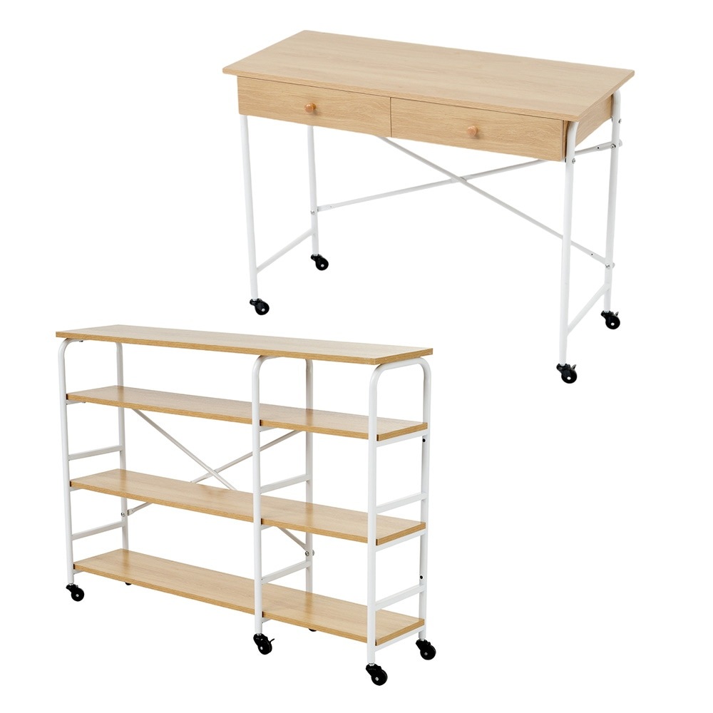 【国内即日発送】デスク+ラック キャスター付き 引き出し付き 2点セット