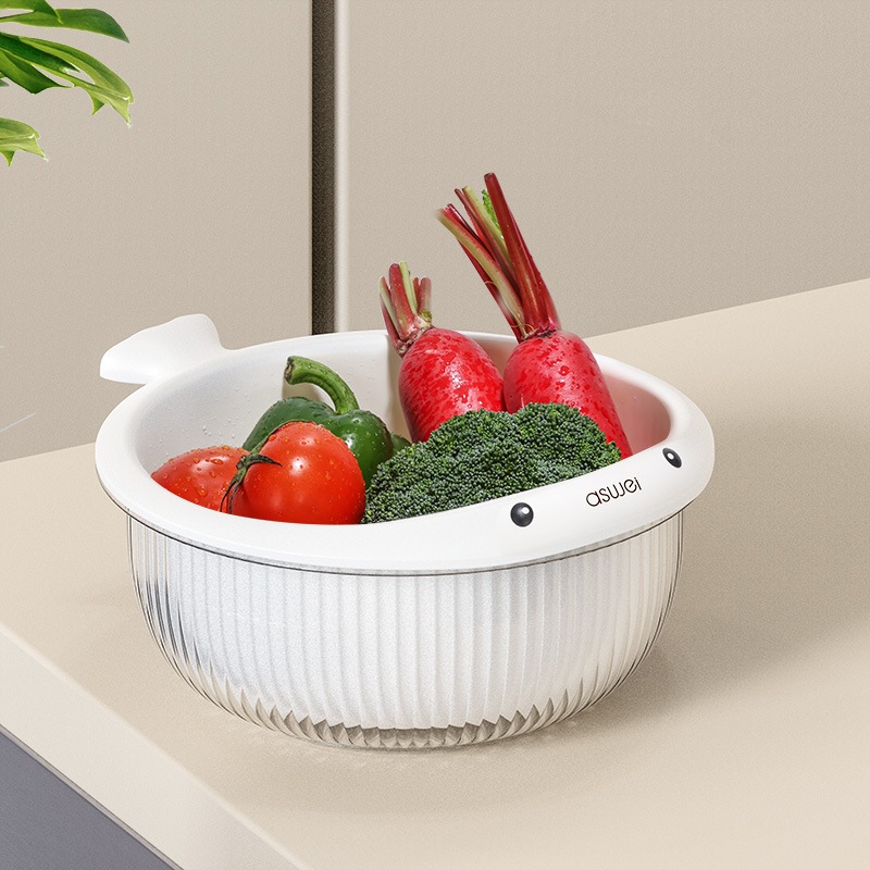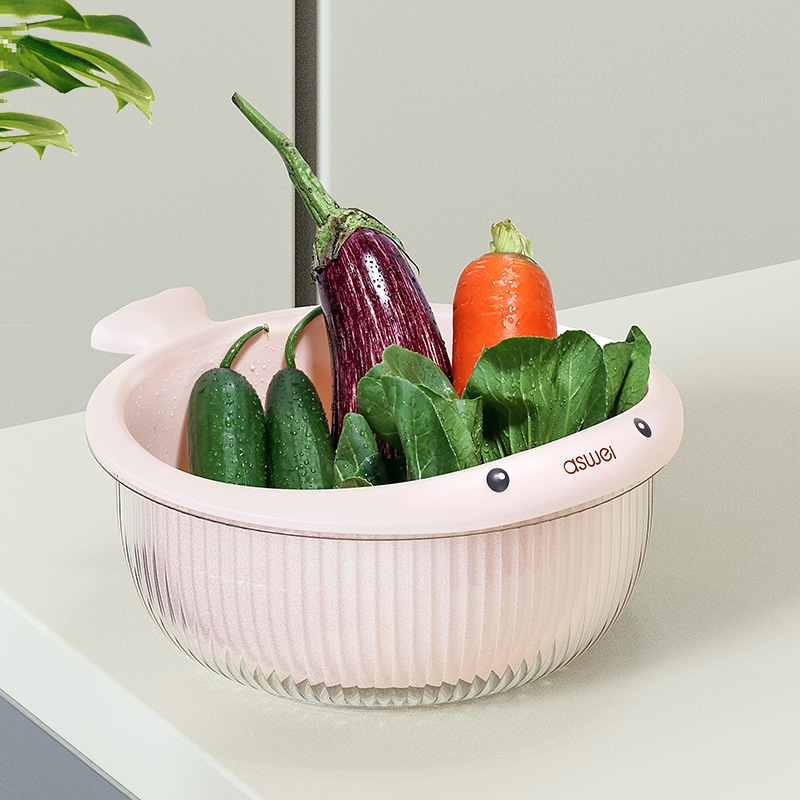 ASWEI水切りカゴ 野菜洗い フルーツバスケット キッチンツール キッチン 調理器具 収納 便利 雑貨 かわいい おしゃれ ホワイト ピンク