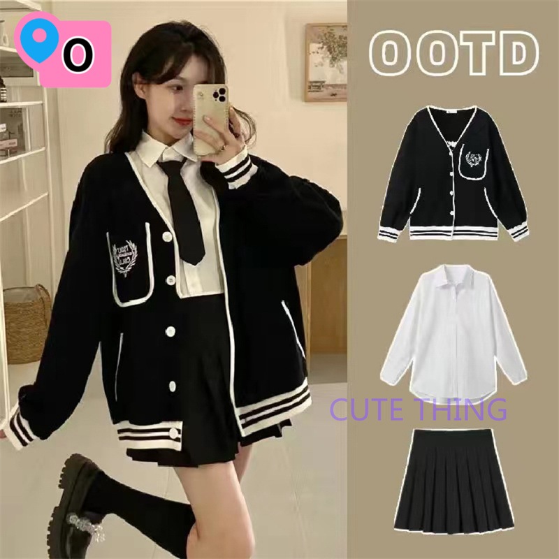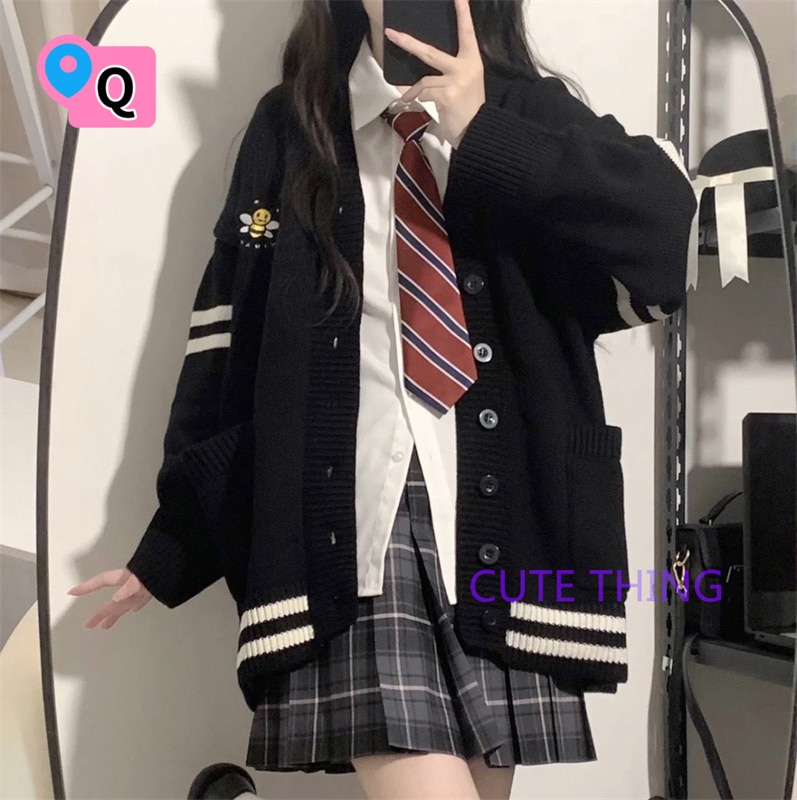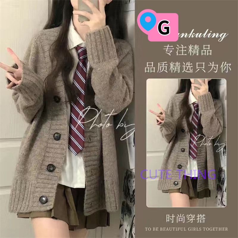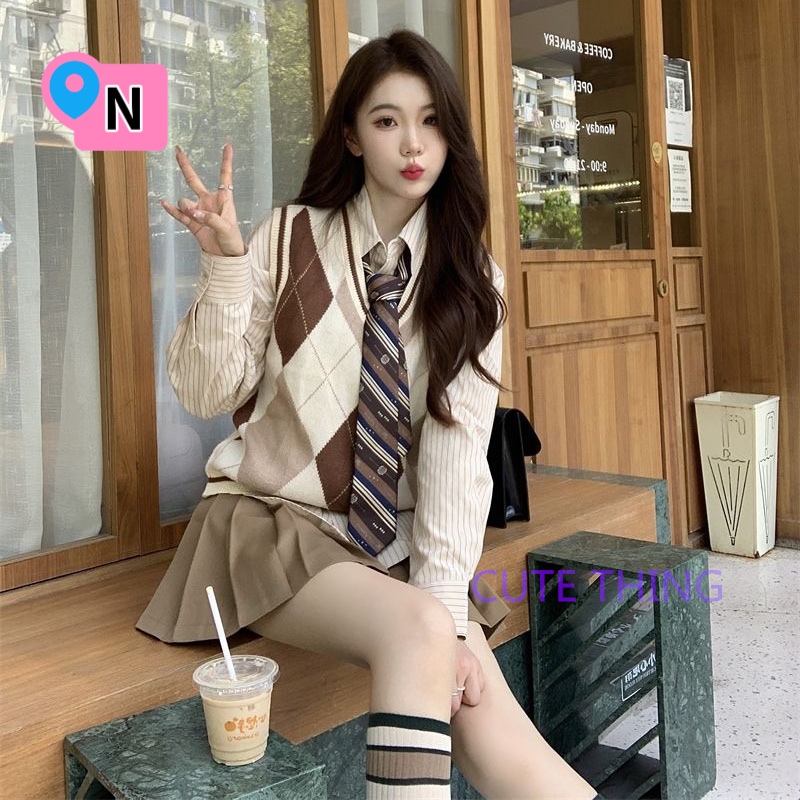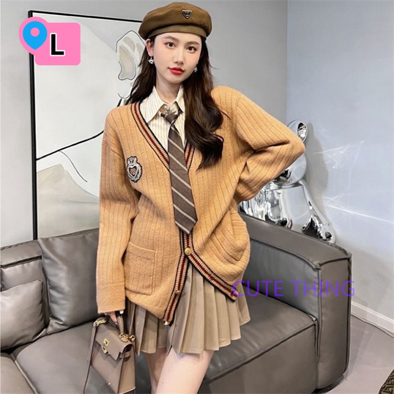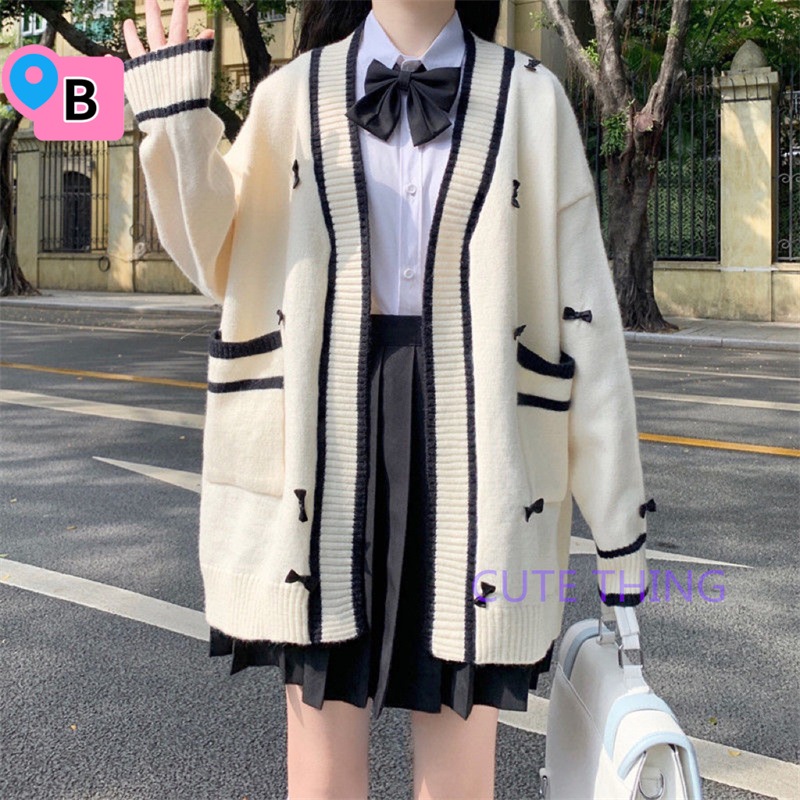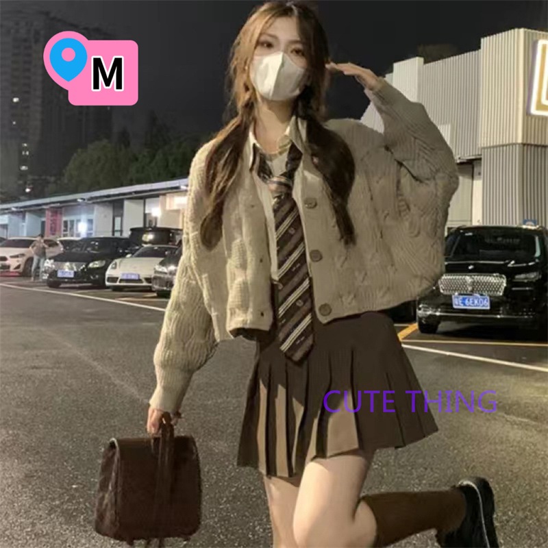 2026韓国ファッション 春秋jk 制服 4点セット ニットカーディガン+プリーツスカート+シャツ+ランダム蝶ネクタイ/ネクタイ学院風jkセーター 卒業式/始業式