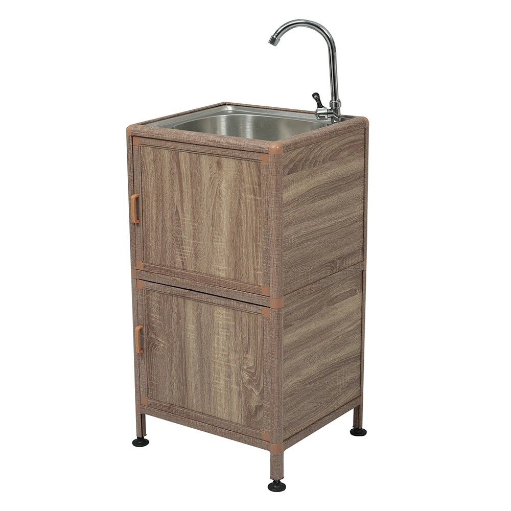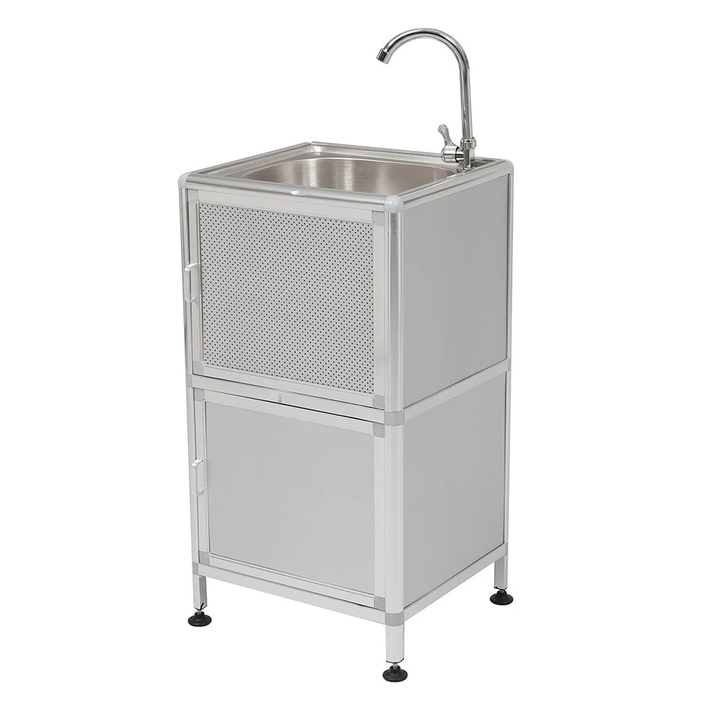 【国内即日発送】囲い付きで便利】屋外 流し台 ステンレス W46×D35×H108cm ガーデンシンク 作業台 キッチン 台所 屋外 簡易 シンク 組み立て簡単 収納棚付 庭 高さ調節 調理台 ガーデ