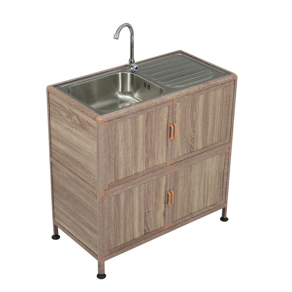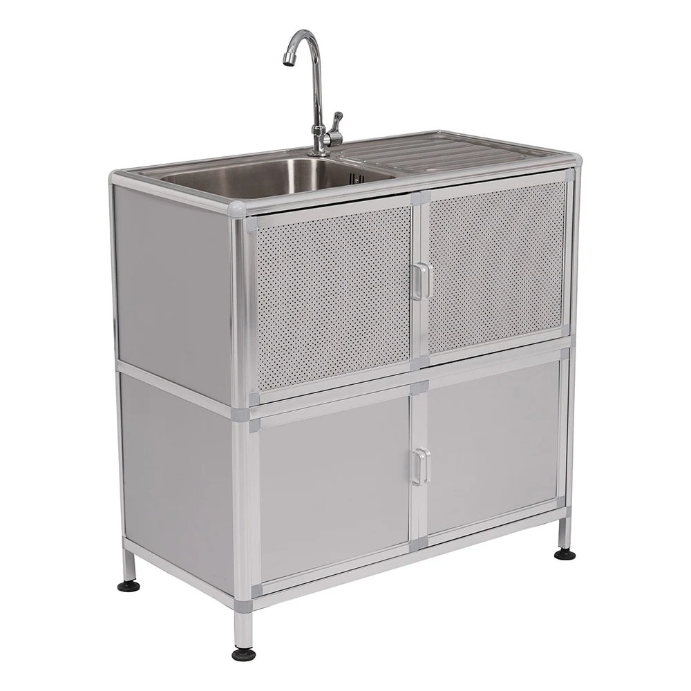 【国内即日発送】【囲い付きで便利】屋外 流し台 ステンレス W83×D43.5×H109.5cm ガーデンシンク 作業台 キッチン 台所 屋外 簡易 シンク 組み立て簡単 収納棚付 庭 高さ調節 調理