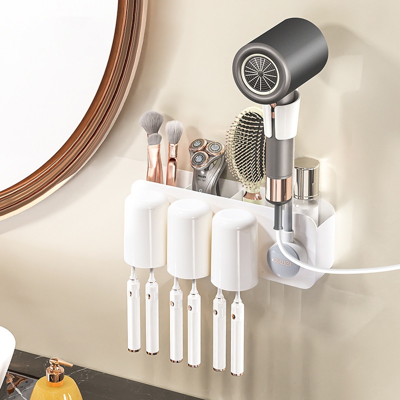 ASWEI歯ブラシスタンド おしゃれ 歯ブラシ立て 壁掛け歯ブラシ 多機能ラック ヘアドライヤーラック 洗面所 収納ラック 取り付け簡単 粘着テープ 穴開け不要