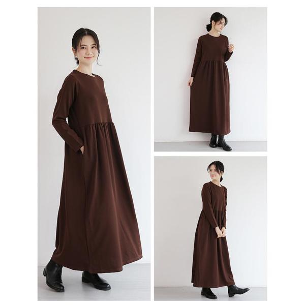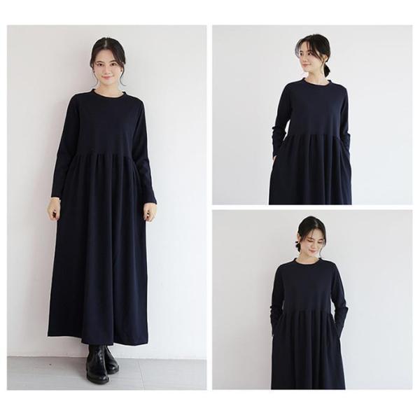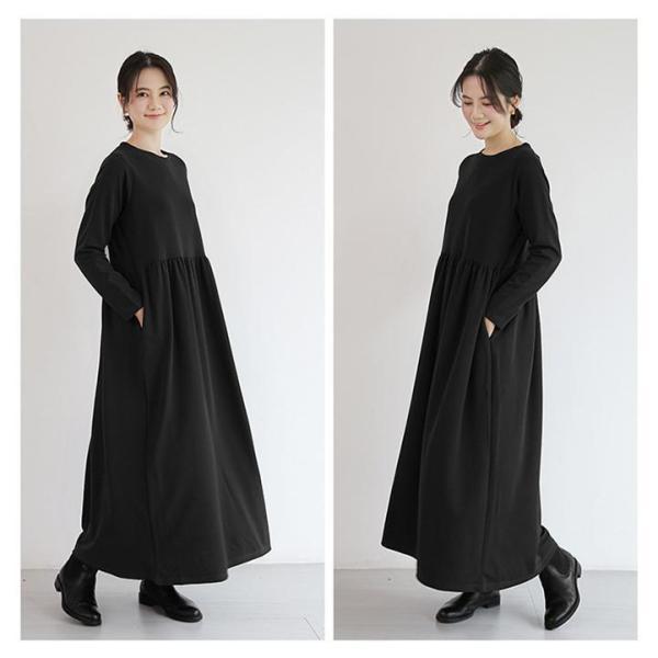 高級な質感 ワンピース レディース 春 長袖 マキシワンピース ロングワンピース フレア マキシ丈 丸首 長袖 綿 重ね着 体型カバー ゆったり シンプル 春 秋冬