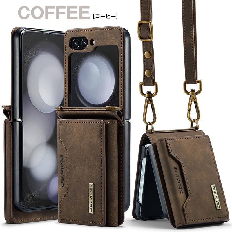 Galaxy Z Filp5ケースクロスボディ ランヤード 取り外し可能 磁気取り外し可能ウォレットGalaxy ZZ Filp4 Filp3 ケースキックスタンド付きレトロなレザー財布付き