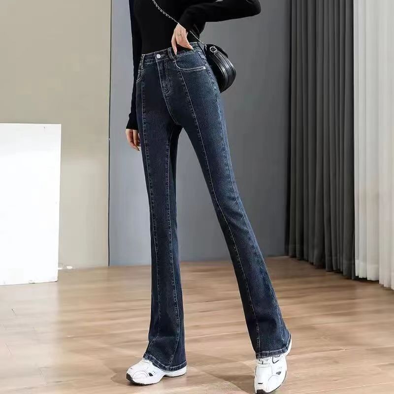 ハイウエストマイクロフレアジーンズ春の新作韓国版insギャル痩せ見えヒップアップストレートパンツ スラックスパンツ