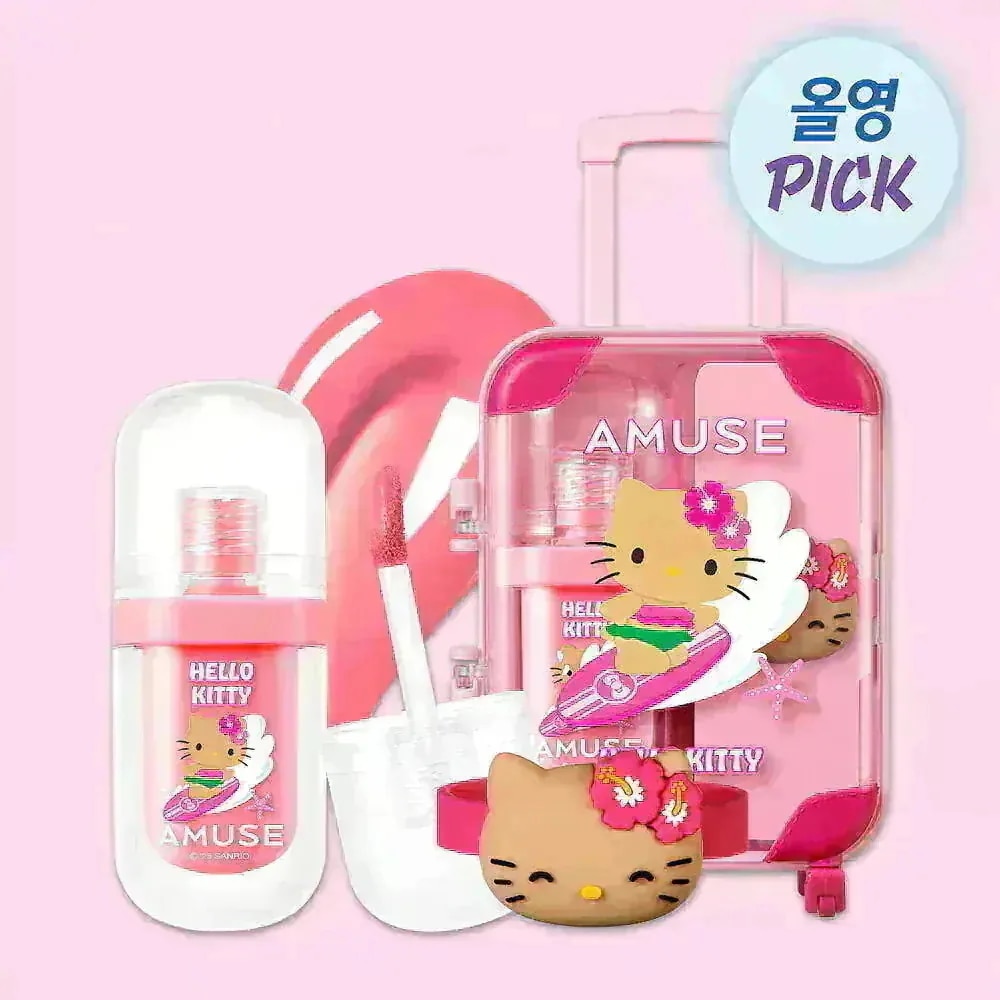 amuseのリップは唇も荒れにくく色もちも良く日頃から愛用してます。日焼けキティちゃんとのコラボが可愛くてすぐ購入しました。キティちゃんのリングを他のamuseのリップに付け替えて長く楽しむことができるのもお気に入りなポイントです。