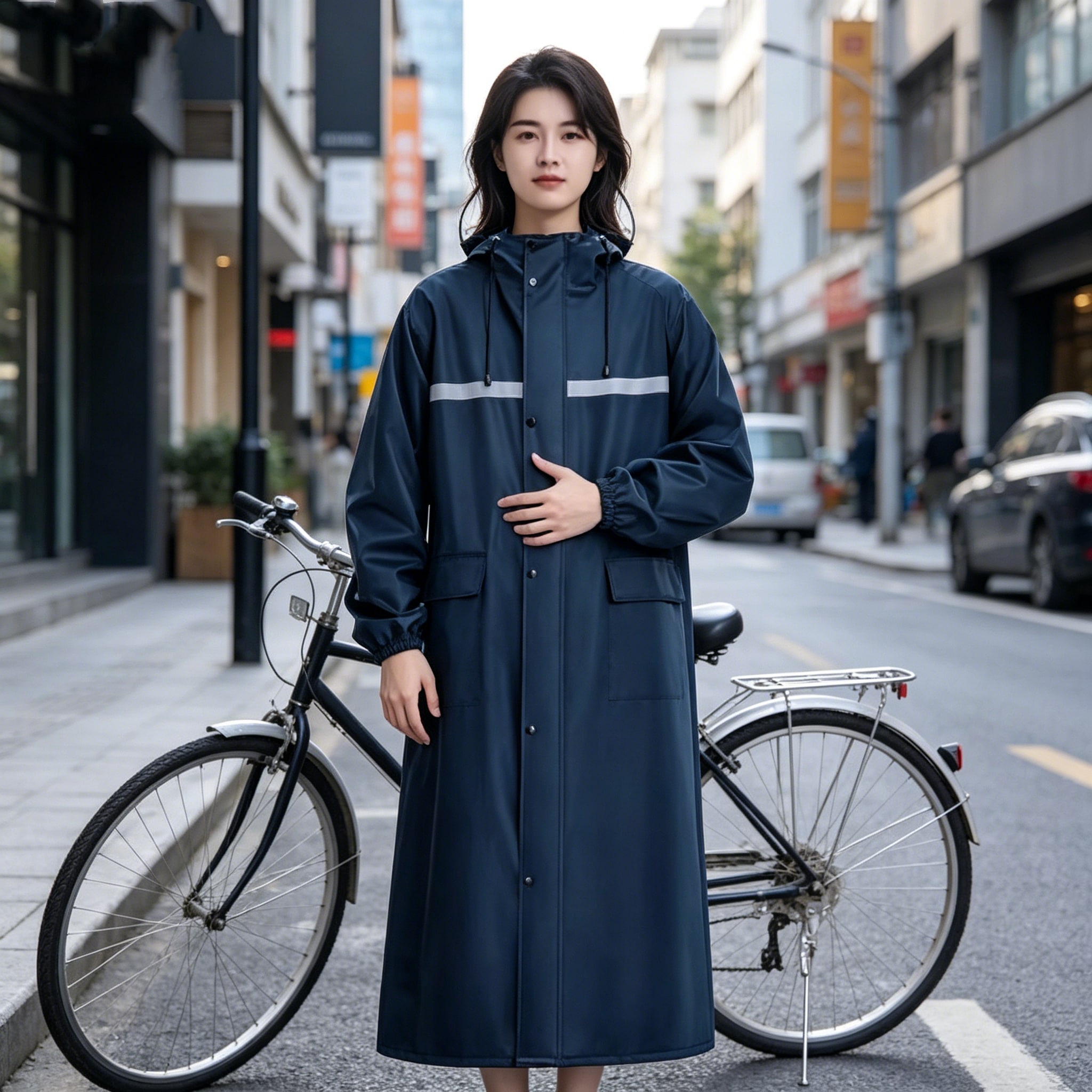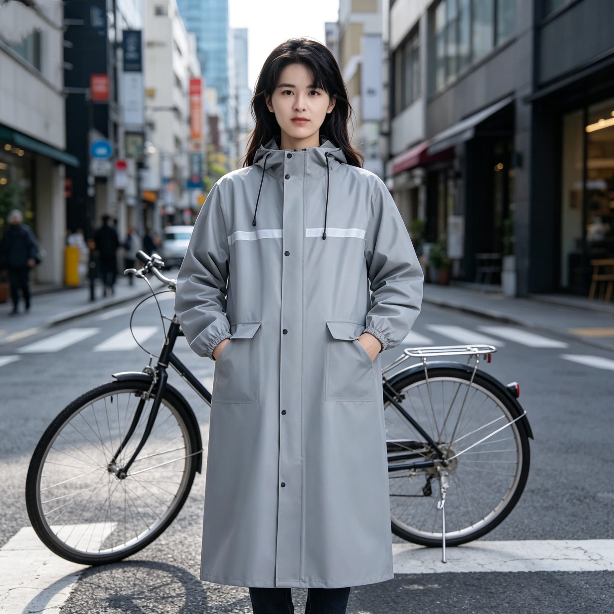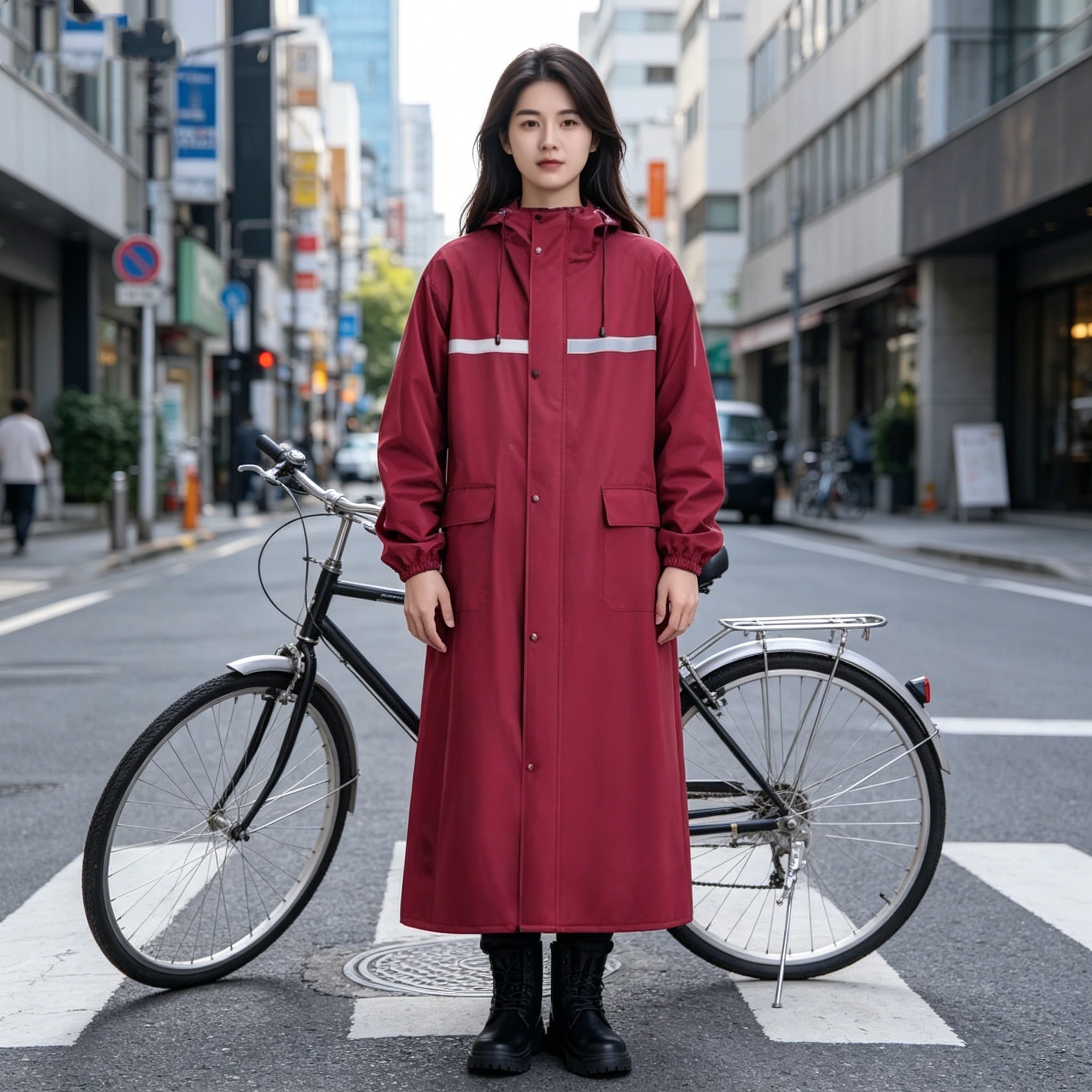 生地が重いという意見もありますが、重いからこそ自転車で走ってても捲れにくく、濡れません。