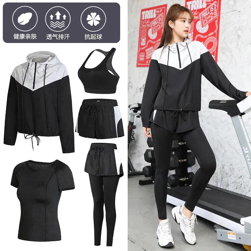 【 5点セット 】おしゃれヨガウェア上下セット レディース 長袖 半袖ショーツ トップス タンクトップ 春夏 速乾 運動ズボン ホット ジャージ ヨガパンツ レギンス セットアップ