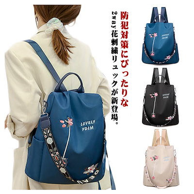 刺しゅう 防犯リュック 大容量 リュックサック 2WAY 小さめ 撥水加工 フラワー刺繍 バックパック デイバッグ A4サイズ ラウンドファスナー エスニック 森ガール プレゼント かわいい おしゃれ
