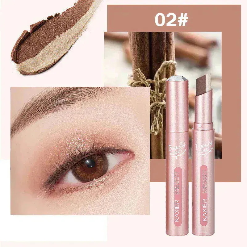 2色のアイシャドウは一度塗っただけできれいに2色になります。指でなじませるとまた、これも良い感じになります。