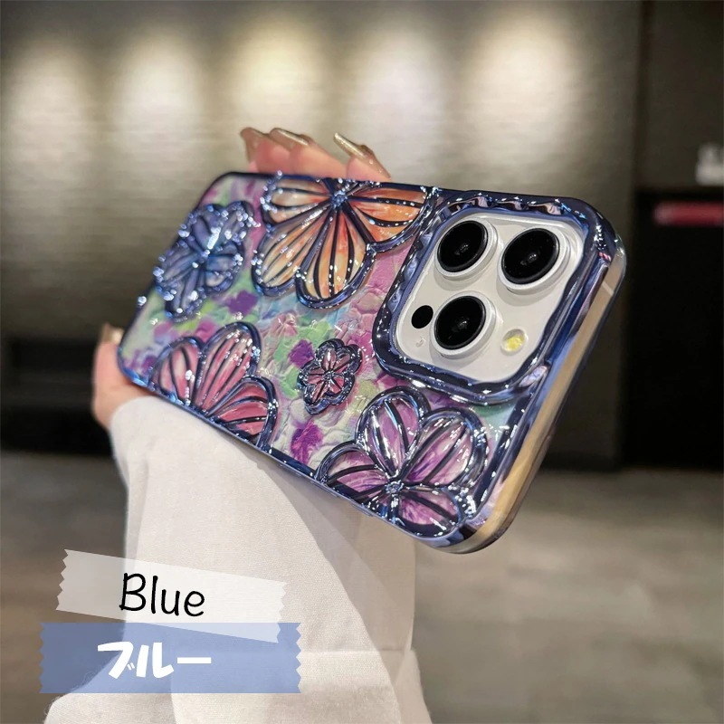 スカイブルー 花 ペイント 3d 手帳型スマホケース iphone11 ケース iphone 12ケース iphone 13 Pro Max iphone14 Pro 15 Pro Max対応