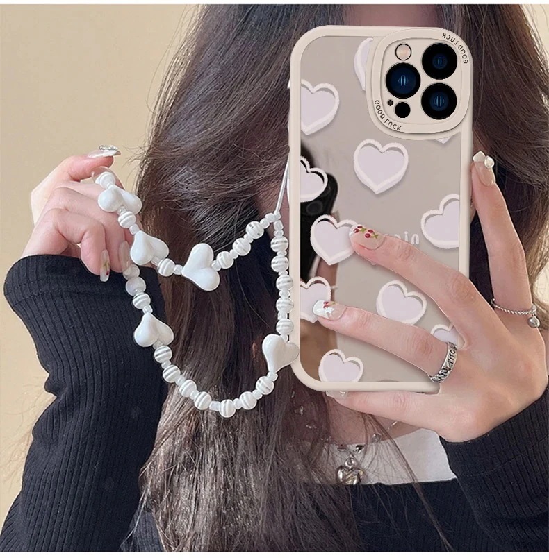 iphone15 15pro ケース ミラー ハート柄 ケース iphone14 14pro ケース チェーン付き iphone13 ケース iphone 12 11 ケース レンズ保護 シンプル