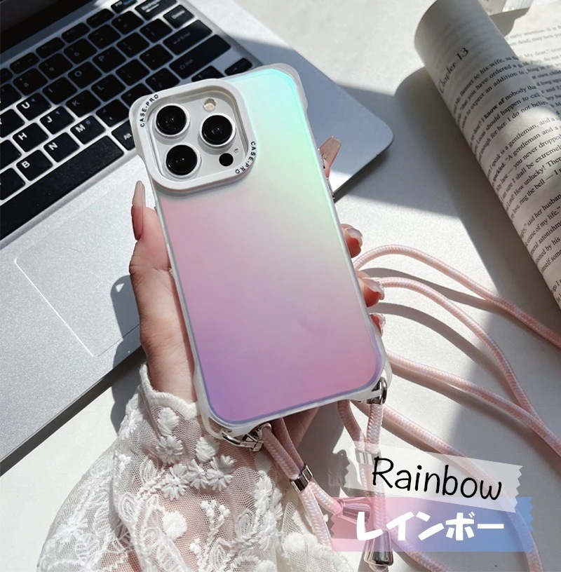 iphone15 15pro ケースオーロラカラーケースiphone14 14pro ケース 小さく新鮮なデザイン iphone13 ケース iphone 12 11 ケース ショルダーストラップ付き