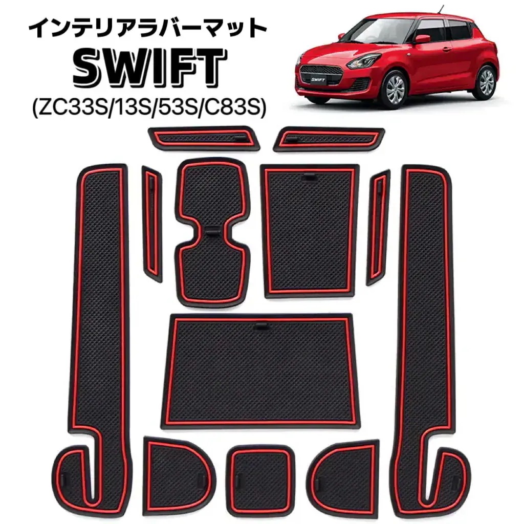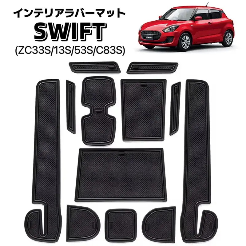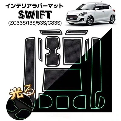 SWIFT ZC33S/13S/53S/C83Sインテリアラバーマット 車種専用設計 ノンスリップ フロア ゴム 汚れ防止 騒音防止 滑り止め 12ピース ブラックホワイト 夜光 car-20