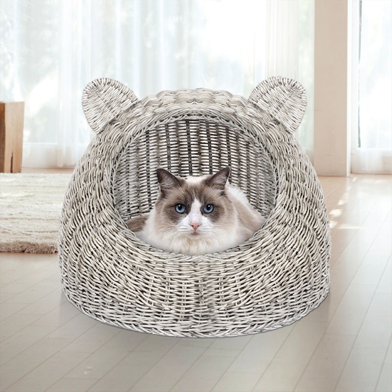 猫犬兼用ハウス ハンドメイド編みハウス ペットの巣 通気 四季兼用 猫ハウス 犬ハウス 安全感を与えるペットの巣