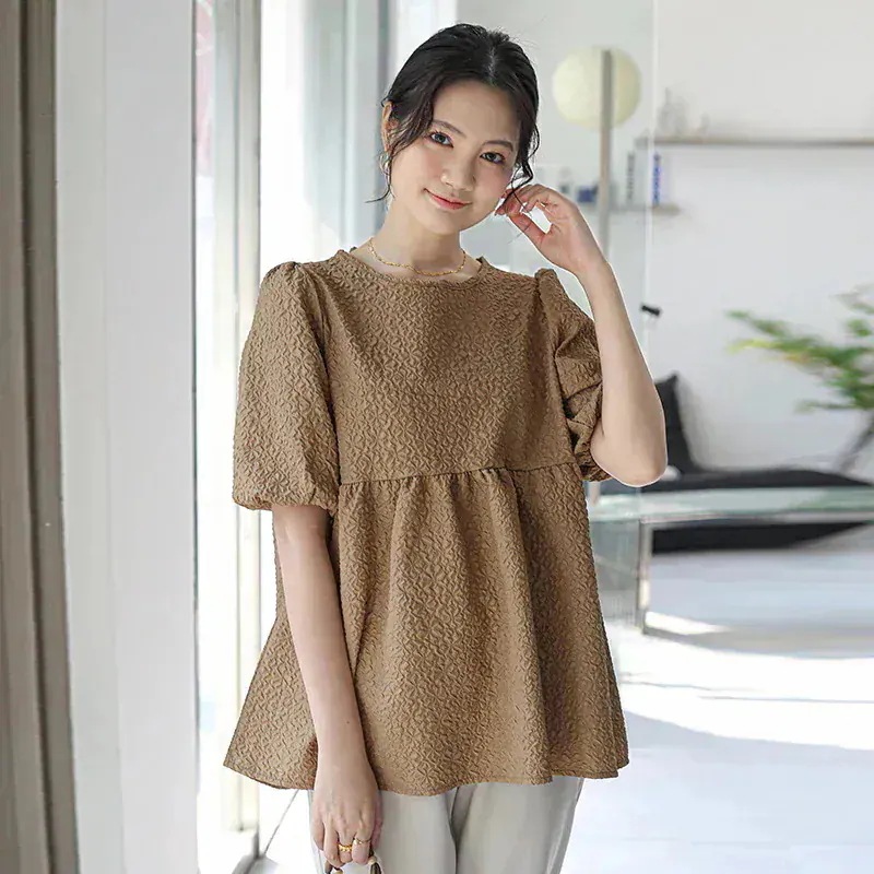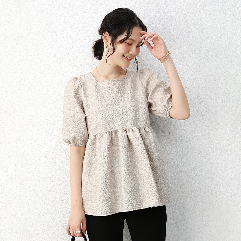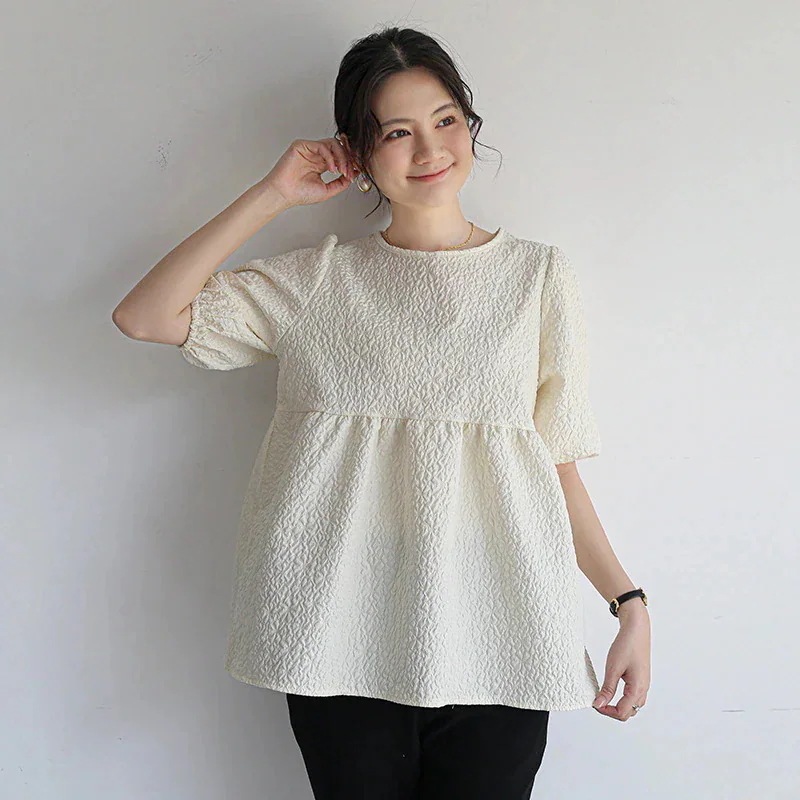 お腹周りはふんわりしているので、妊婦さんにも良さそうです。二の腕のゴムは緩いのでもう少しキツめだったら良かったなと思います。クリーム色なので透けます。結構、黄色味が強めのクリーム色です。Sサイズやホワイトがあればあればもっと良かったな…