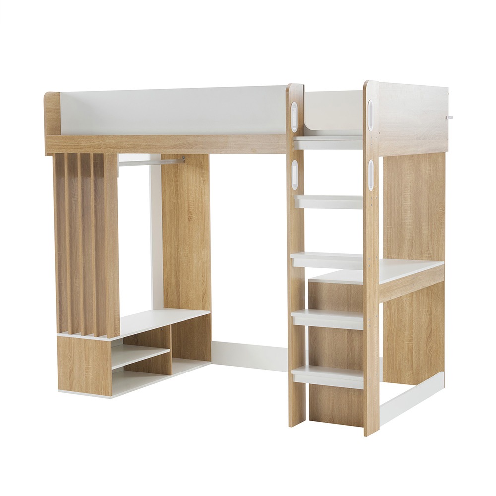 【国内即日発送】システムベッド 頑丈 階段 木製 収納 シングル デスク シェルフ ハンガー付き 北欧風 大人 一人暮らし ベッド 木製 ホワイト