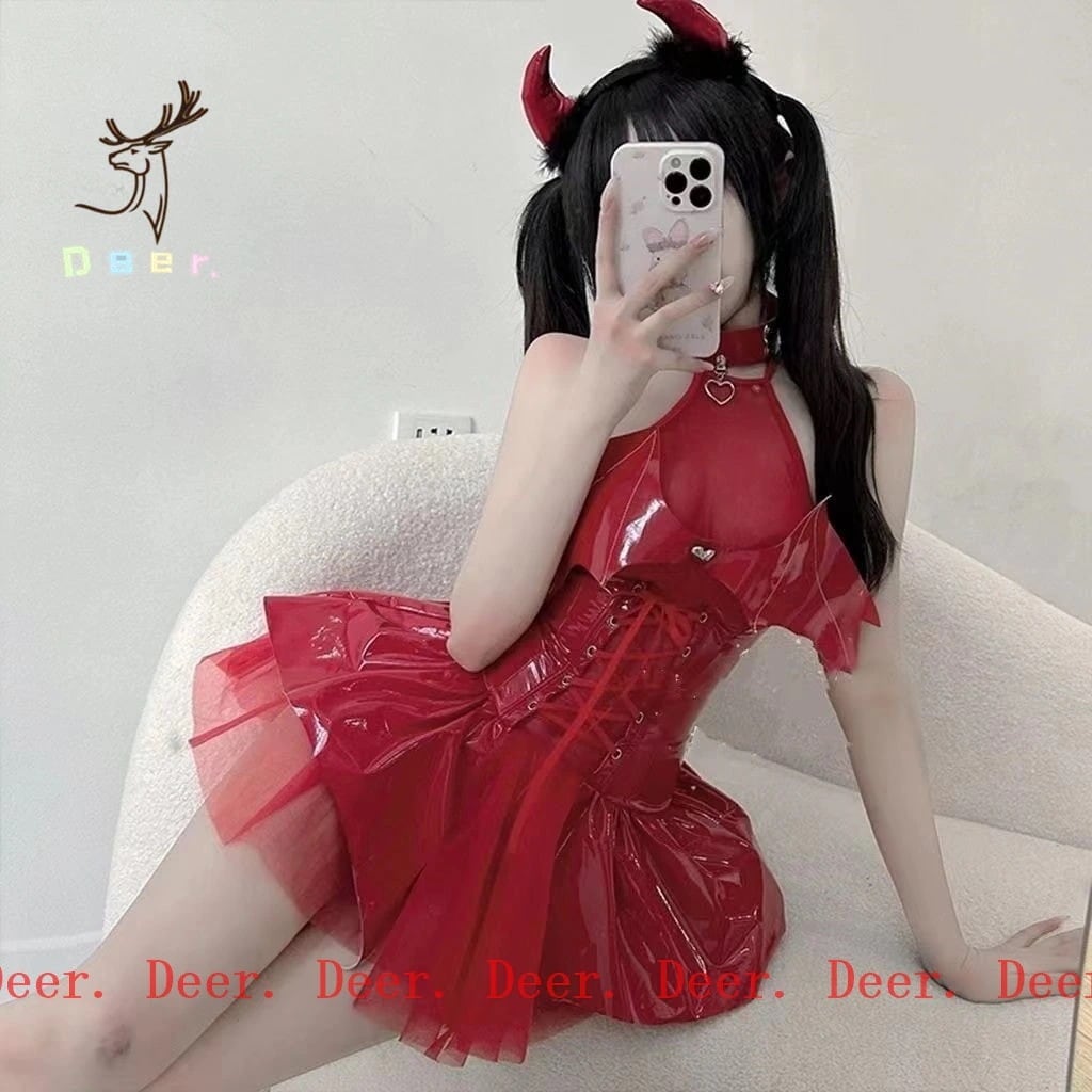 小悪魔ハロウィンセクシー亮面PUバンドミニスカート日系jk制服COS二次元女装ロリータ脚魅せミニスカート