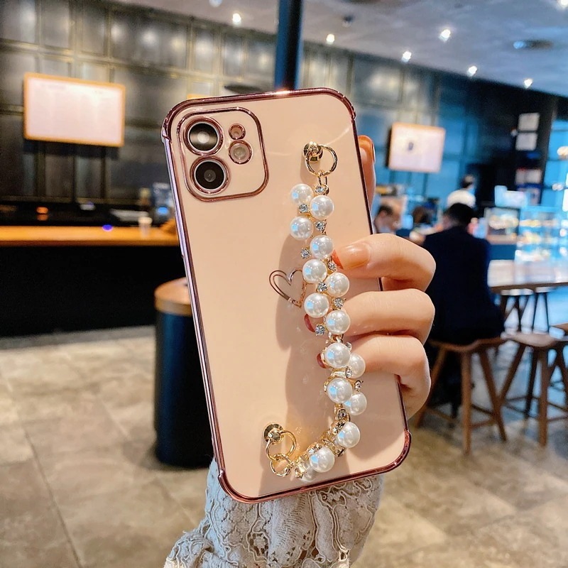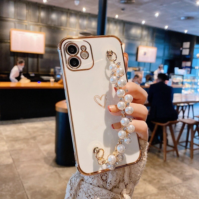 iPhone 14ケース多機種対応Apple 11に適した日本と韓国の小さな真珠のブレスレット電気メッキ愛の携帯電話ケースiphone12/xs/xr高級ソフトケース