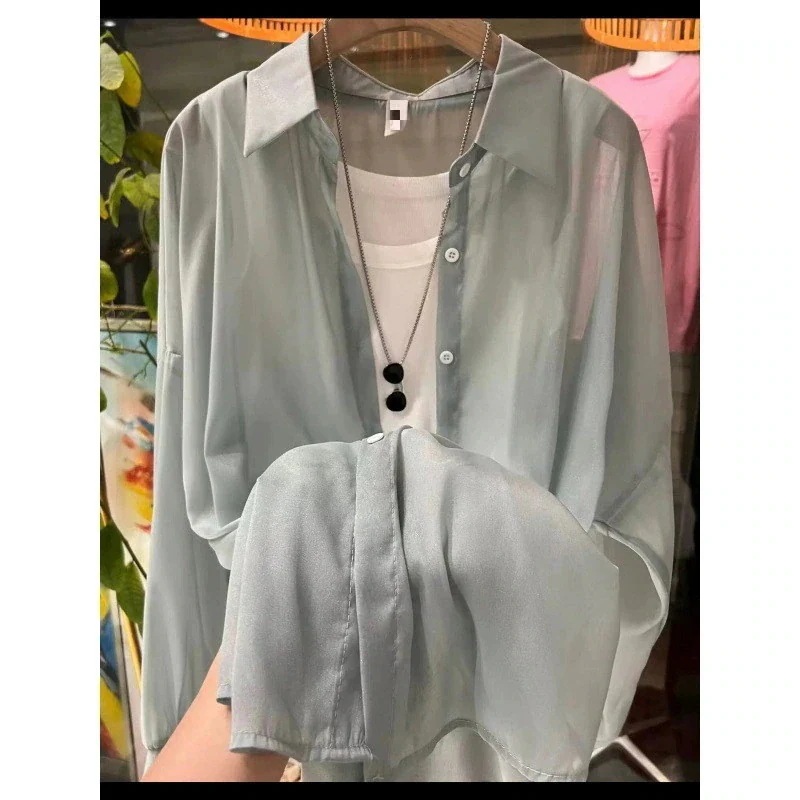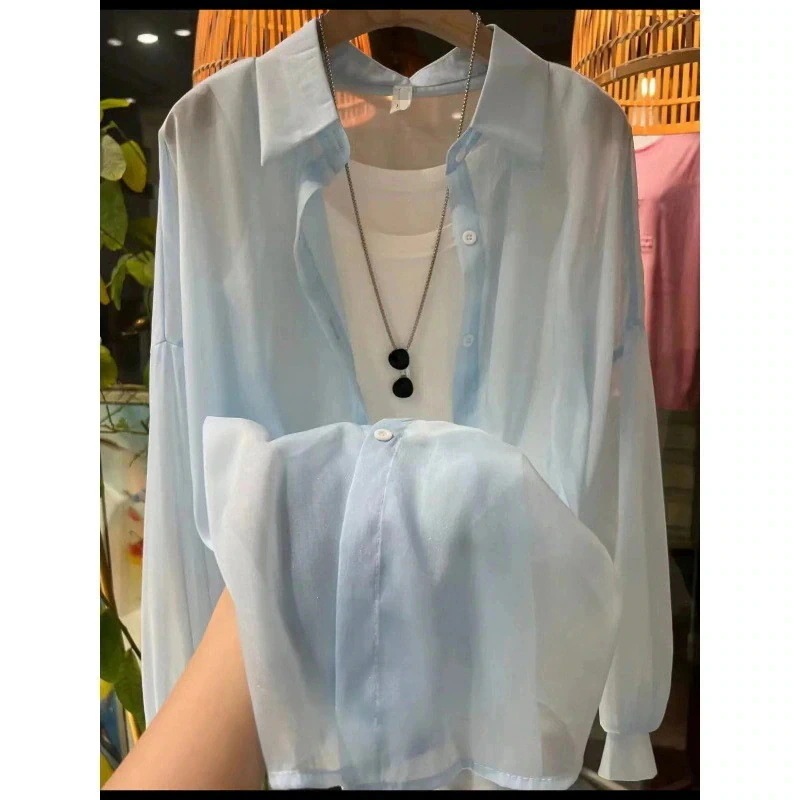 即納シアーシャツUVカットブラウス日焼け止めカーディガン薄手サマーシフォンシャツ冷房対策韓国ゆったりレディースひんやりロングシャツ