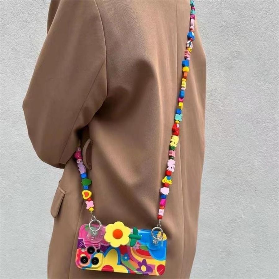 カラー 花柄 スマホケース ショルダー スマホショルダー ストラップ 耐衝撃 便利携带 iPhone ケース iPhone14 ケースiPhone15 /xr/11/12/13/14/pro