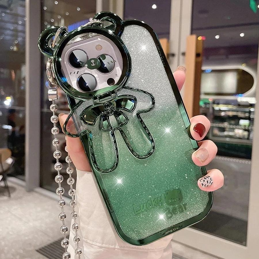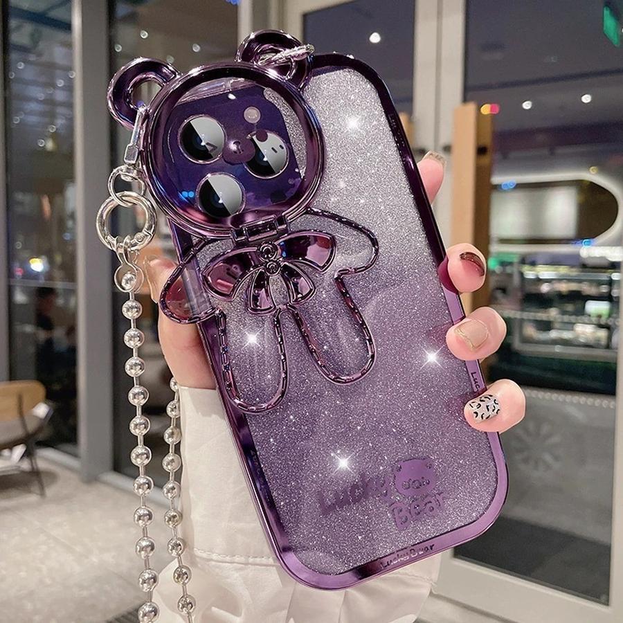 キラキラベアレンズキャップiPhone 15スマホケース iphone14用プロマックスケース13スマホポーチスタンドiPhoneスマホケース12por斜めストラップスマホケース