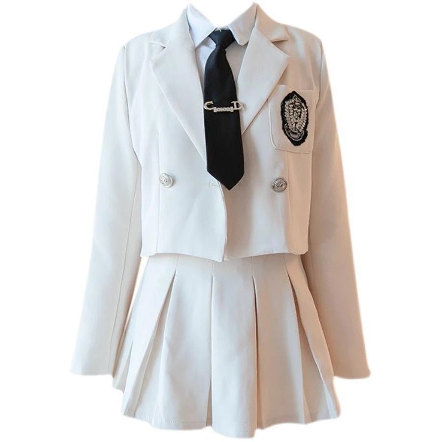 Qoo10限定 2点セット 制服スーツJKブレザープリーツスカートスカート春と秋のプロ服気品 カーディガンスカート女子高生韓国コスプレ ハロウイン