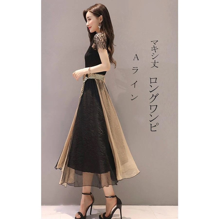ワンピース レディース きれいめ マキシワンピース シフォン ロング丈 夏 半袖 パーティードレス