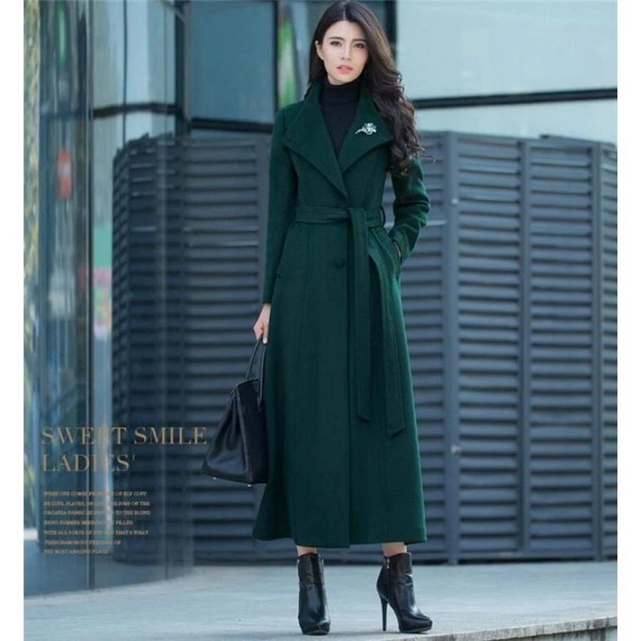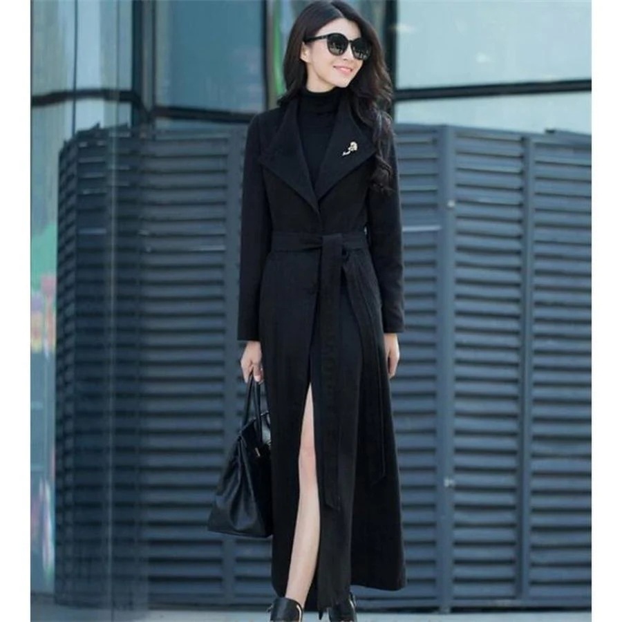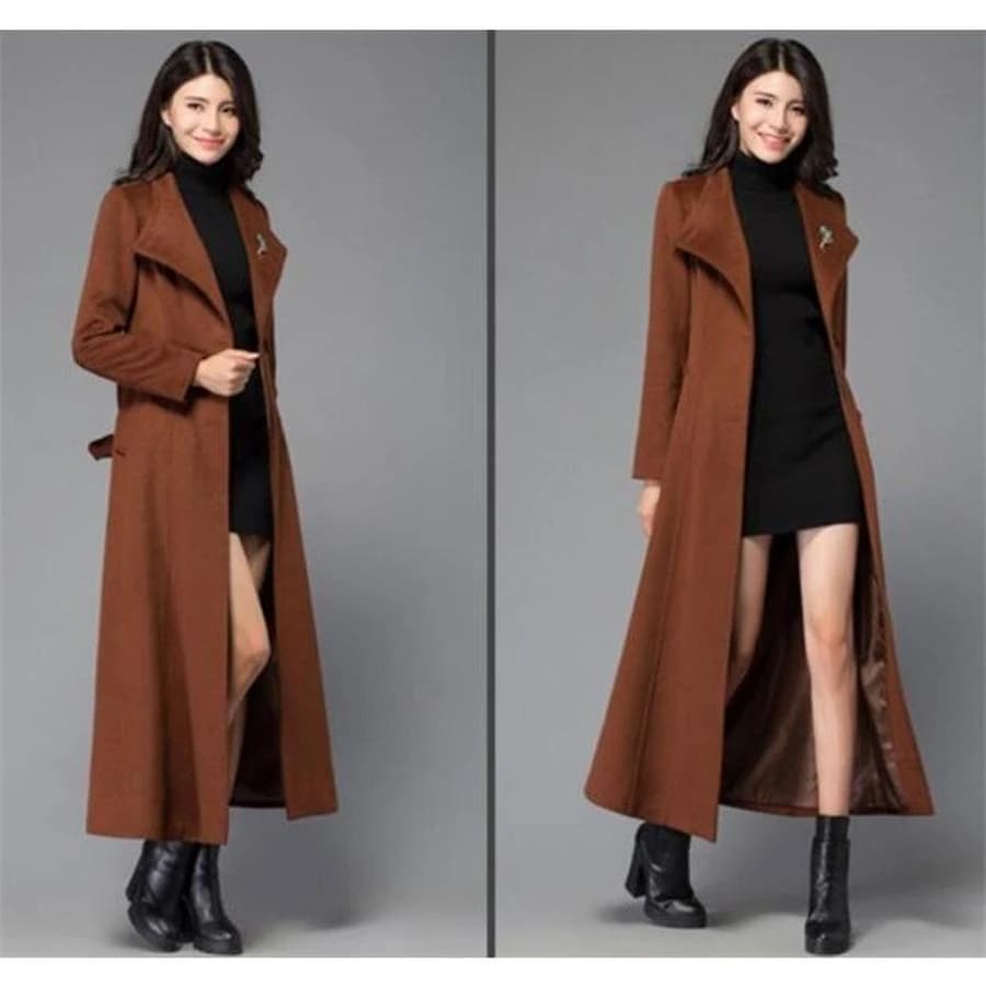 トレンチコート レディース チェスター 超ロングジャケット ウール 秋 春 千鳥柄 スリム カジュア