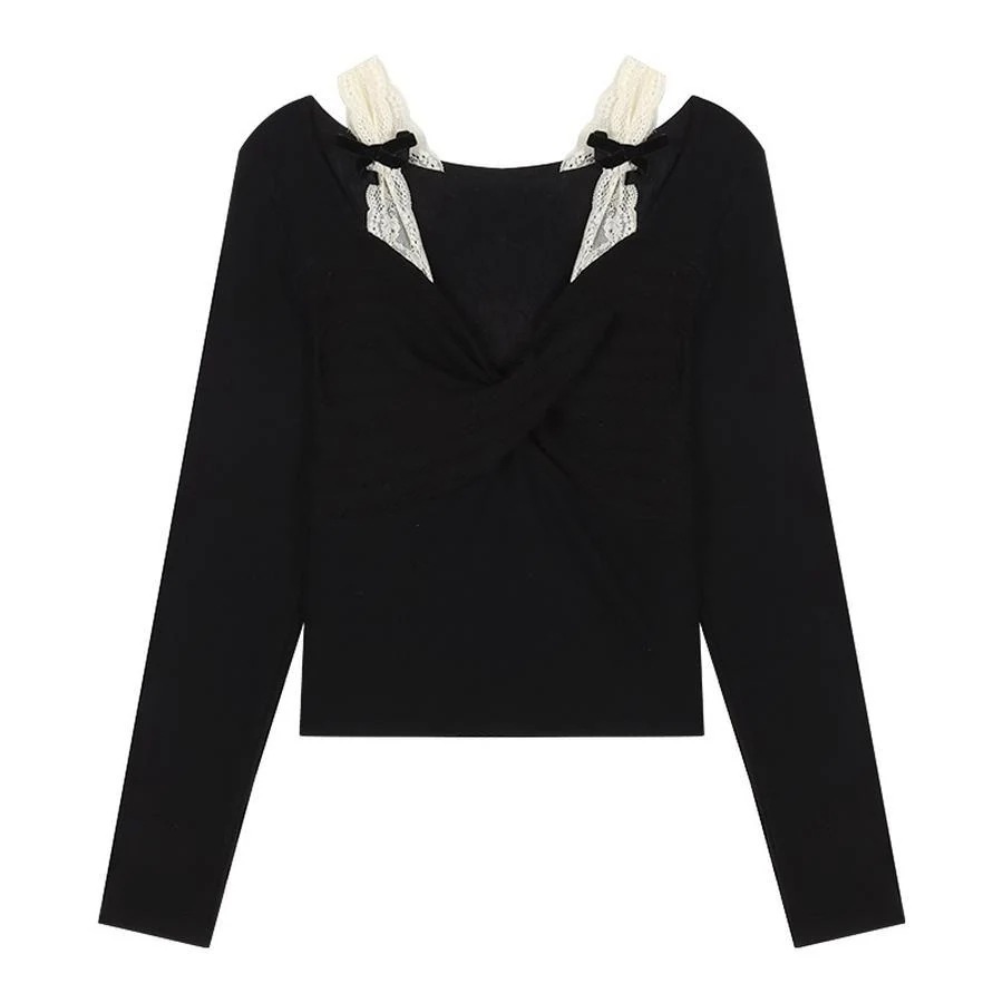 2024春夏 フェイクツーピース トップス レイヤード風 tシャツ 重ね着風 カットソー 長袖 インナー ショート タイト フィット T カジュアル きれいめ フェミニンフレンチモックネック