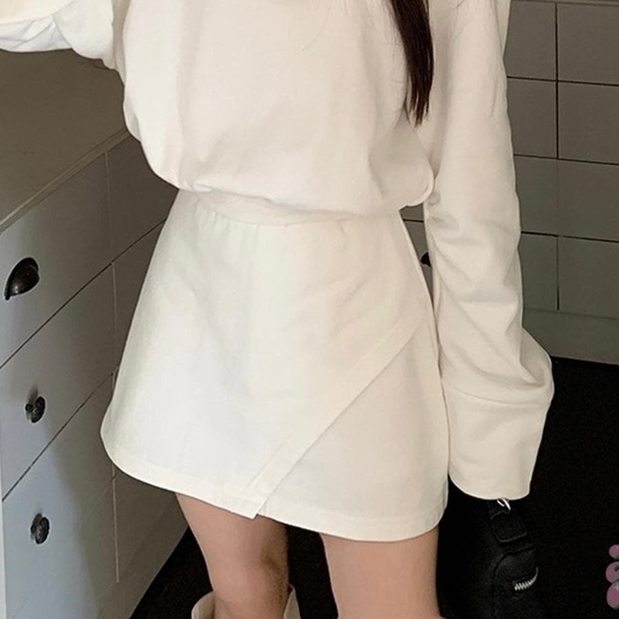 上下別売り普段使い 長袖シャツ トップス ミニスカート ショート レディース かわいい シルエット 2点セット加工フード付き風 きれいめ サイズ 秋冬 ゆったり ファッションダ ブル 大人 可愛い
