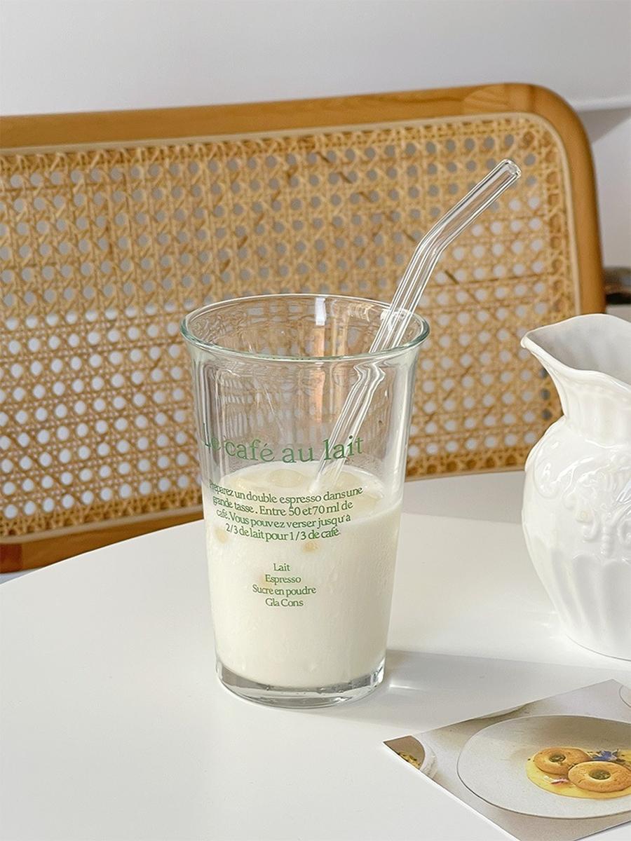 グラス ガラス蓋付き グラスストロー付き コップ カップ グリーンフレンチアルファベット タンブラー クリア 持ち手付き