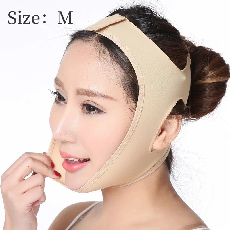 顔の引き締めと痩身のための包帯マスク,首の周りのしわ防止ベルト付きの薄いフェイスマスク