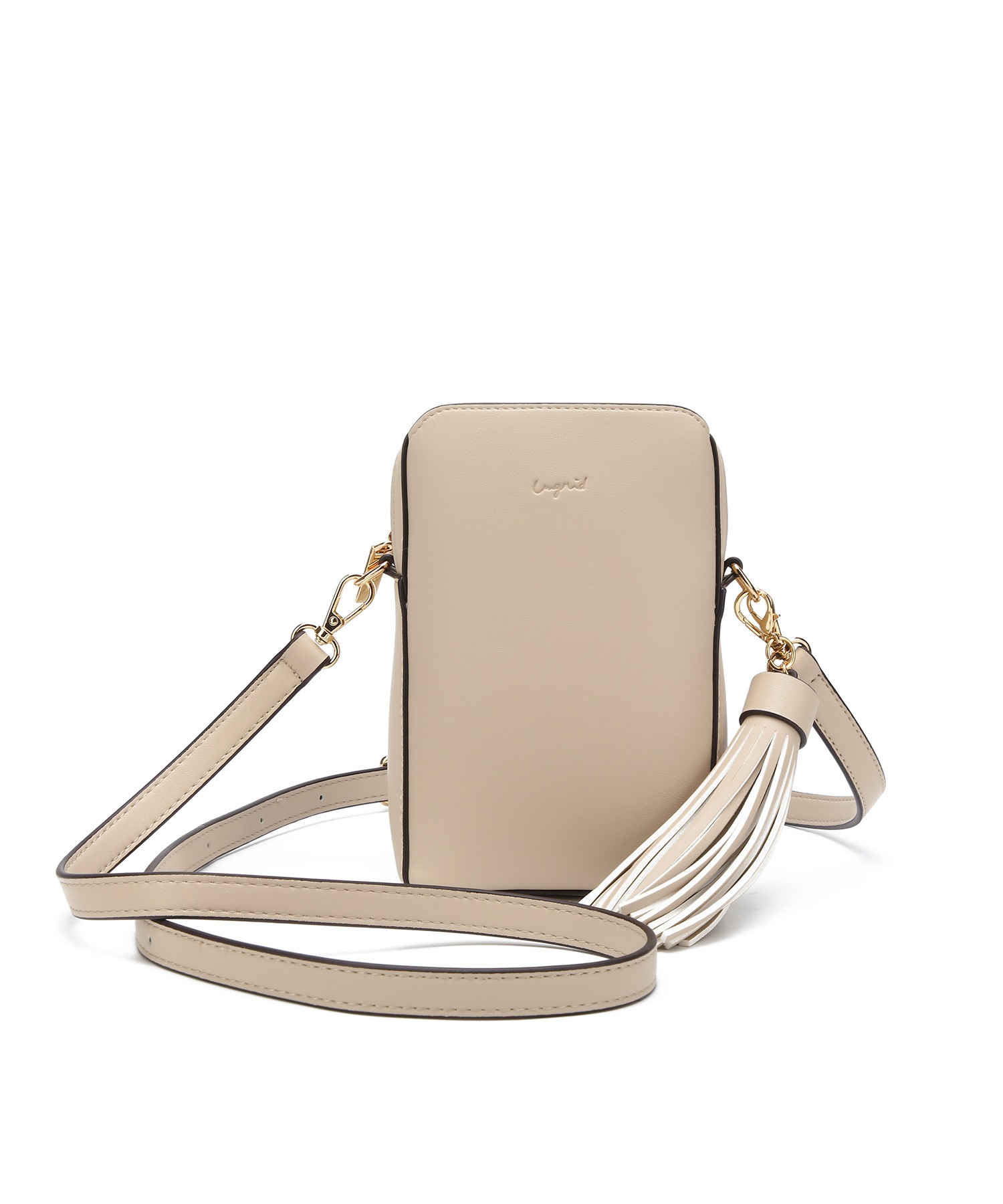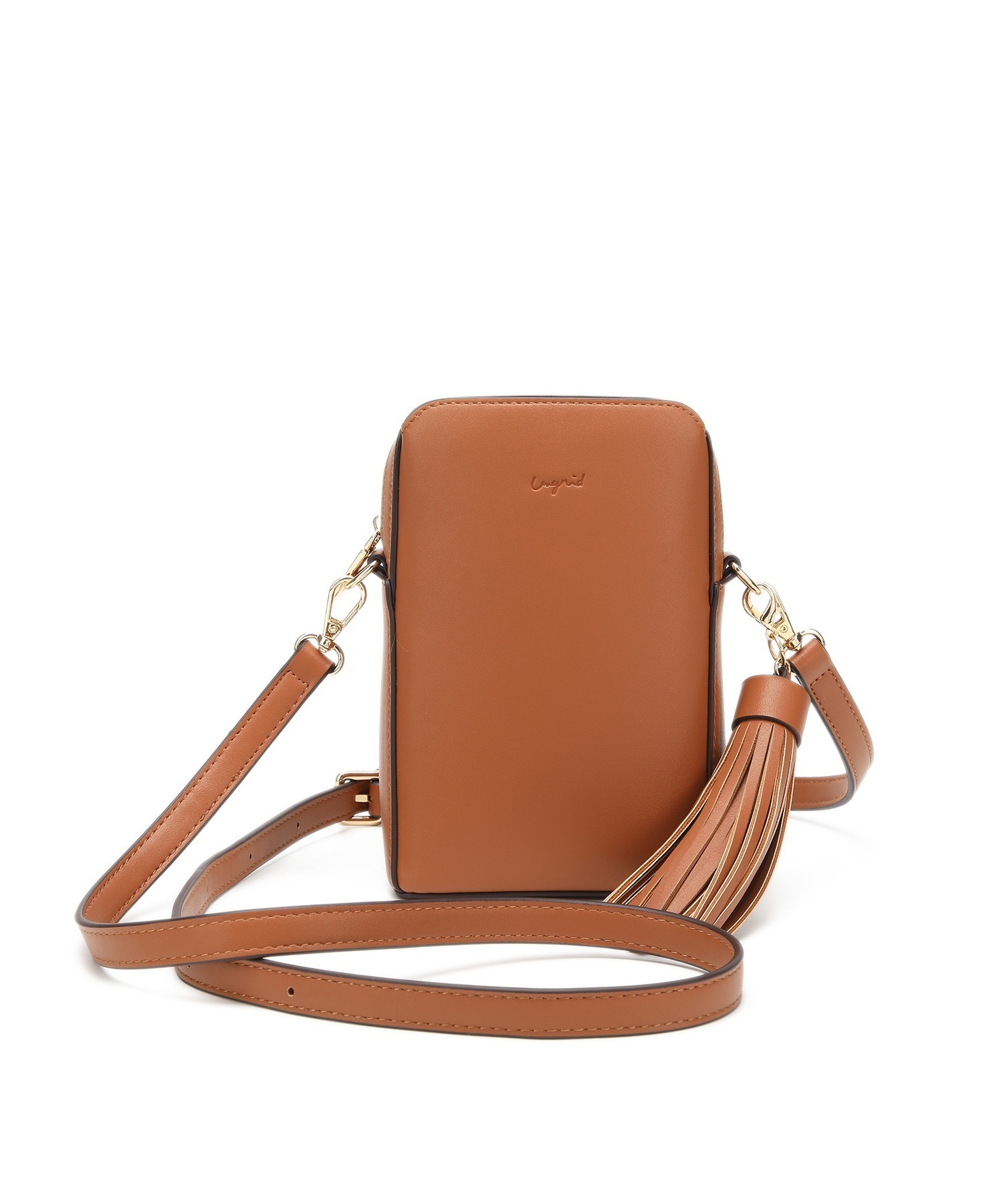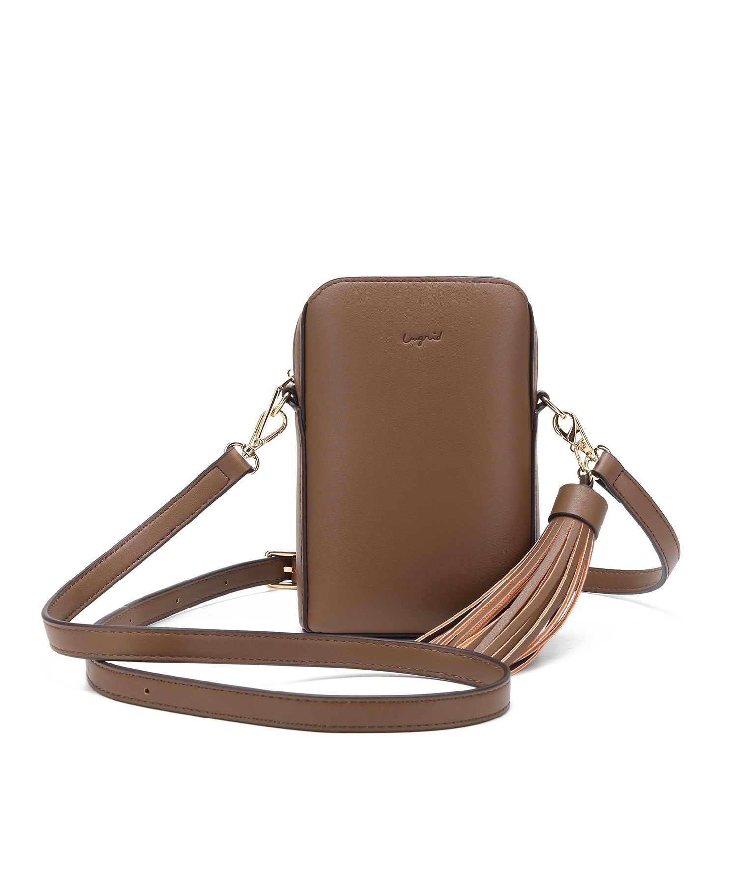 アングリッドショルダーバッグ ポシェット レディース 小さめ ミニ 普段使い ブランド 通勤 通学 大人 かわいい タッセル チャーム付 縦長 両アオリポケット