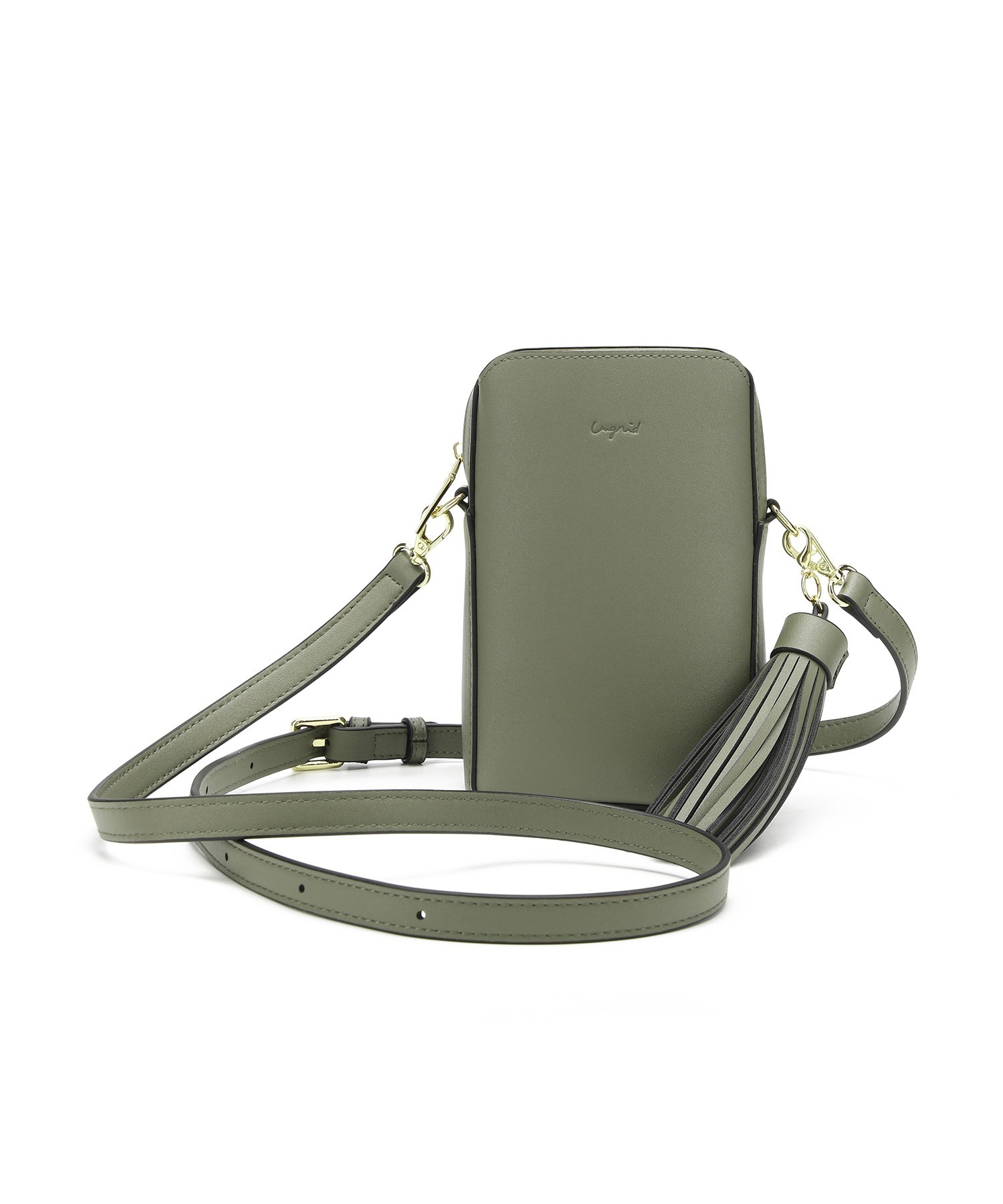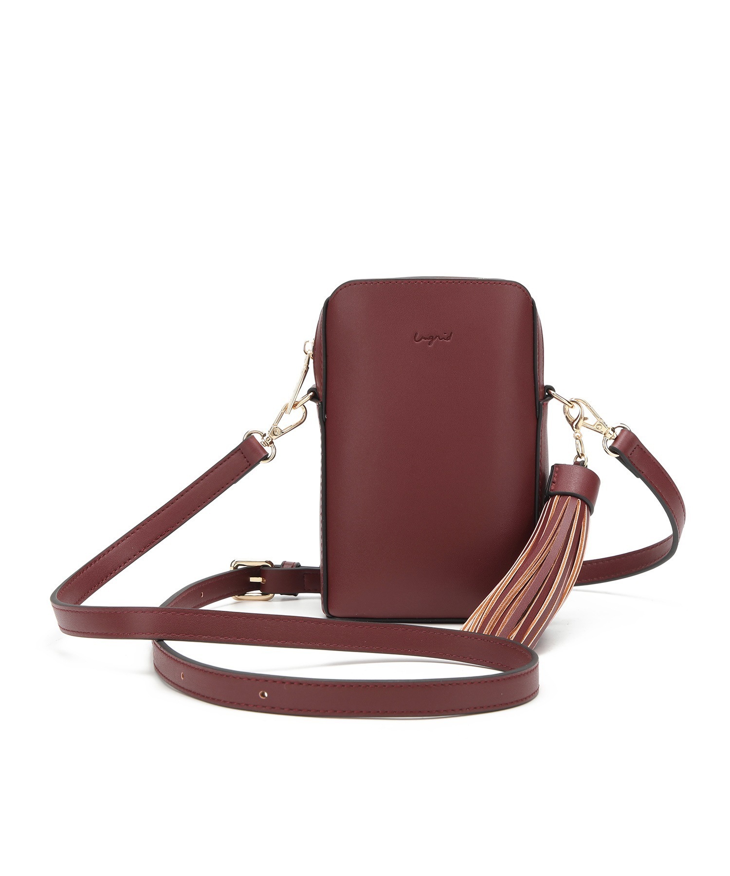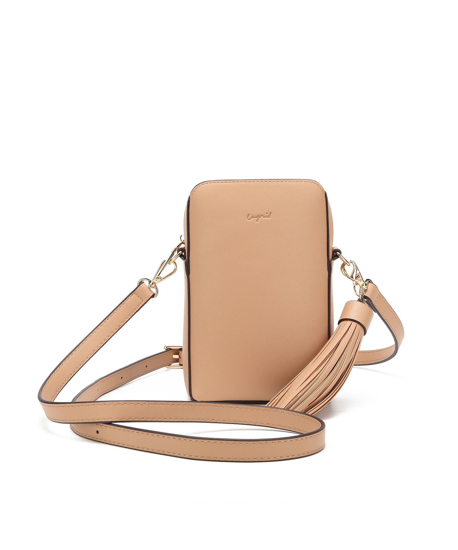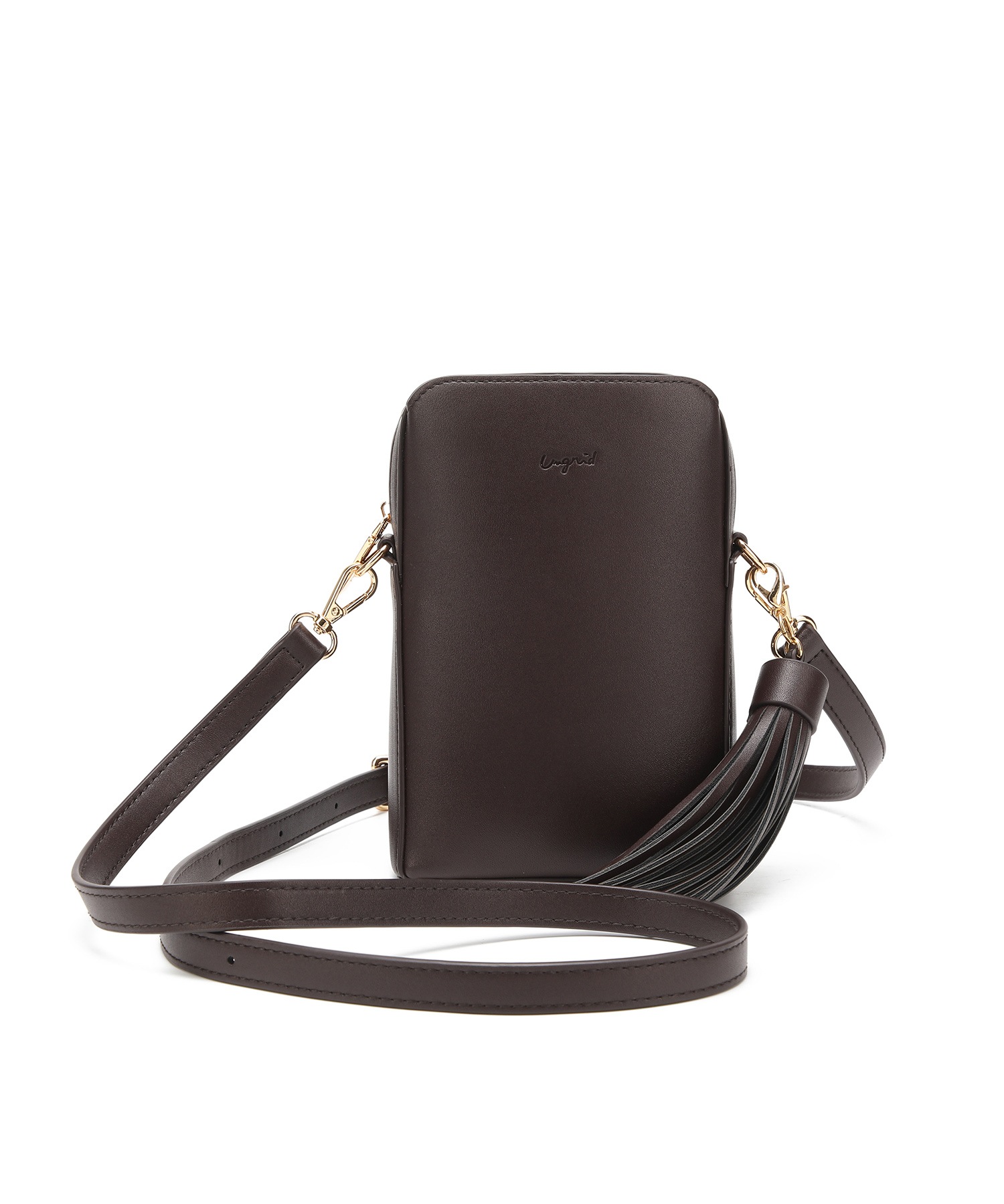 アングリッドショルダーバッグ ポシェット レディース 小さめ ミニ 普段使い ブランド 通勤 通学 大人 かわいい タッセル チャーム付 縦長 両アオリポケット